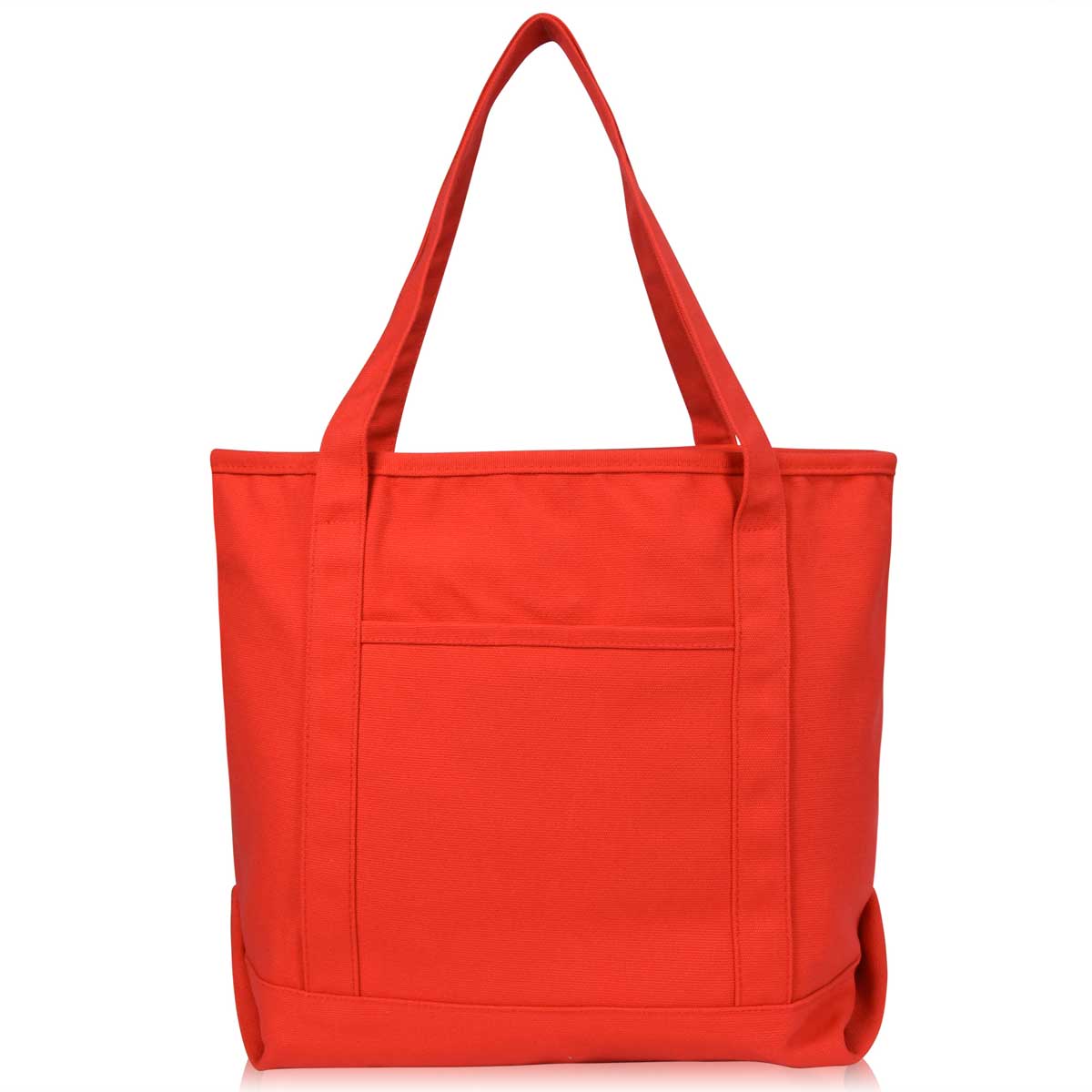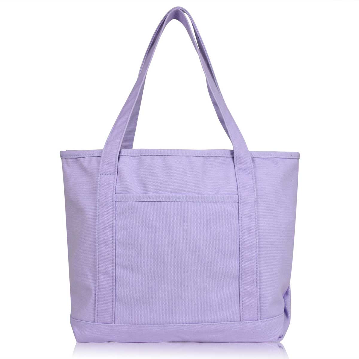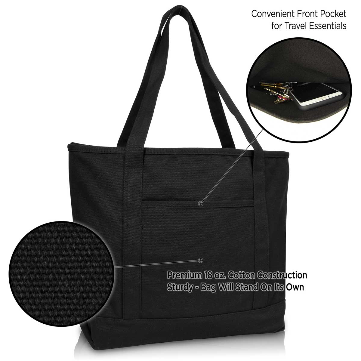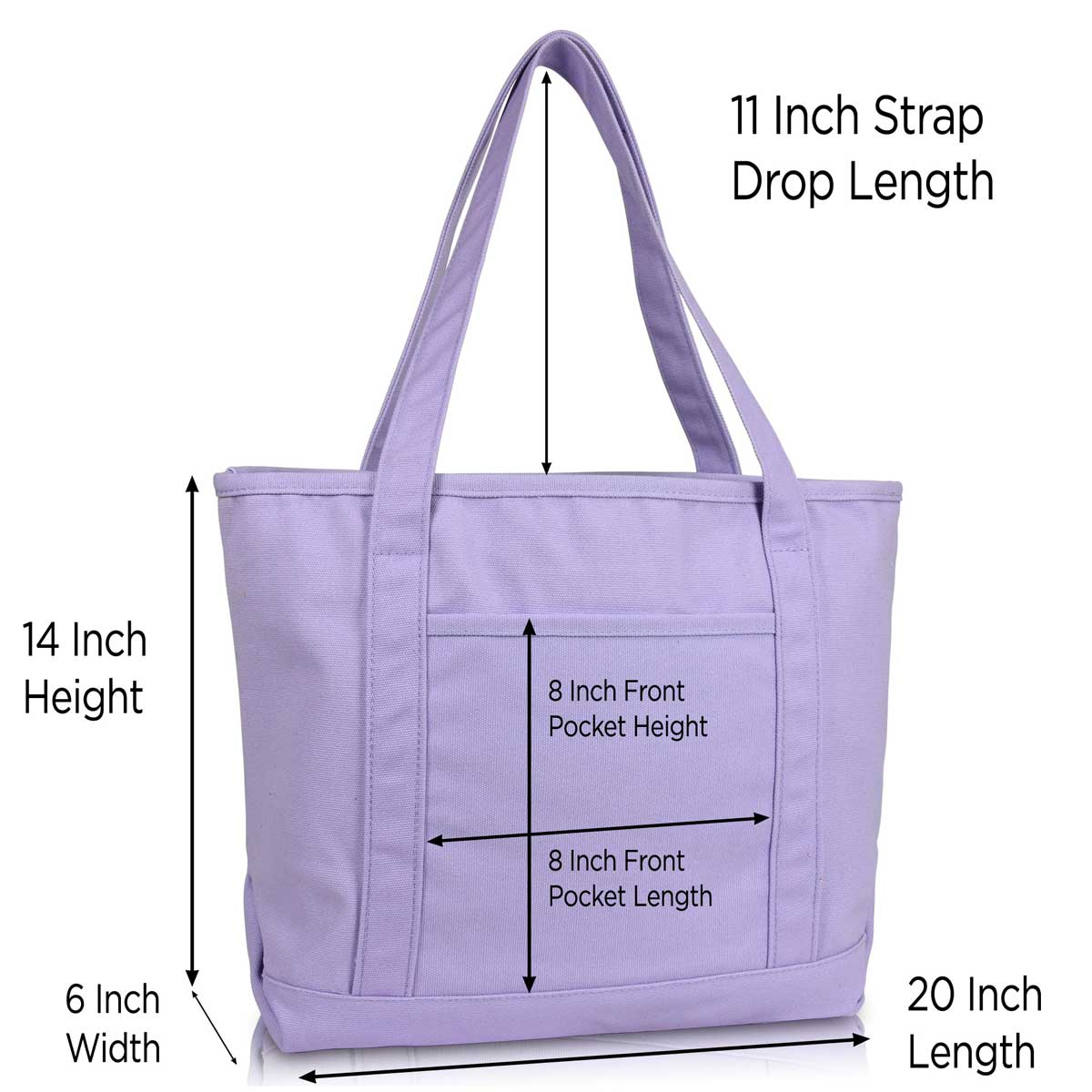 With this bag, we kept in mind the style of a classic canvas tote and mixed vibrant fun colors into it to give an edge to your outings. Made with 18 oz. premium cotton canvas, this tote bag is soft and durable for your everyday adventures. With its 11 inch soft strap handles, it allows for a comfortable carry and can opt as a daily shoulder bag or grocery tote. The main compartment is generous in space (20 inches Length x 14 inch Height x 6 Inch Depth) for you to fit all your groceries or even multiple sets of clothing for travels. On the inside, features a zippered pocket (8.5 inches Width x 6.5 inches Height) for valuables and smaller items. Both the main compartment and inner pocket features custom deluxe Dalix zippers to keep your items secured safely. Located in front is a large outer pocket (8 inches Width x 8 inches Height) for grab-and-go necessity items. Add it to your daily bag collection and use this on any occasion for work, classroom folders and books, or take it for simply on a day out with friends and family. We aim to bring high quality bags at low cost to you.