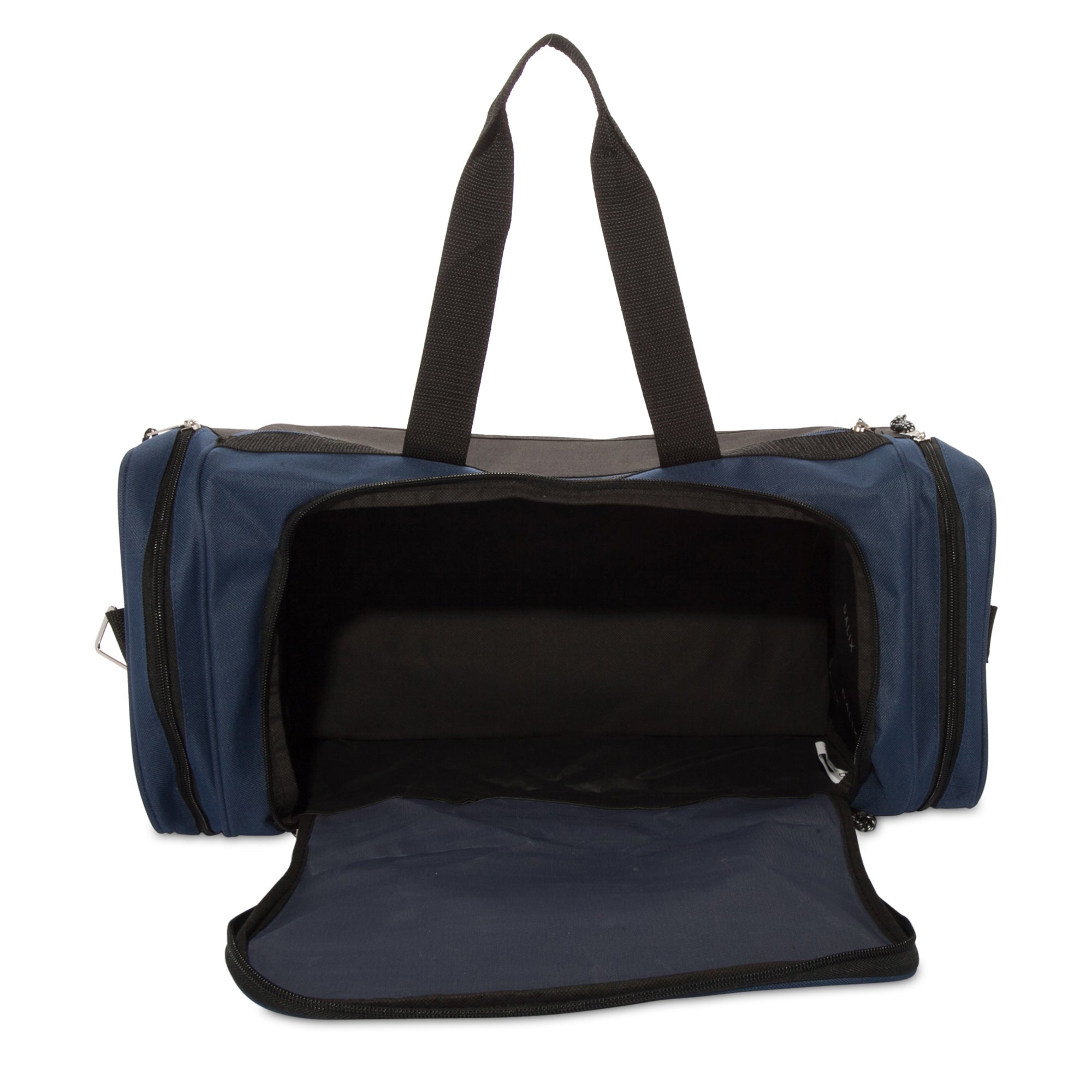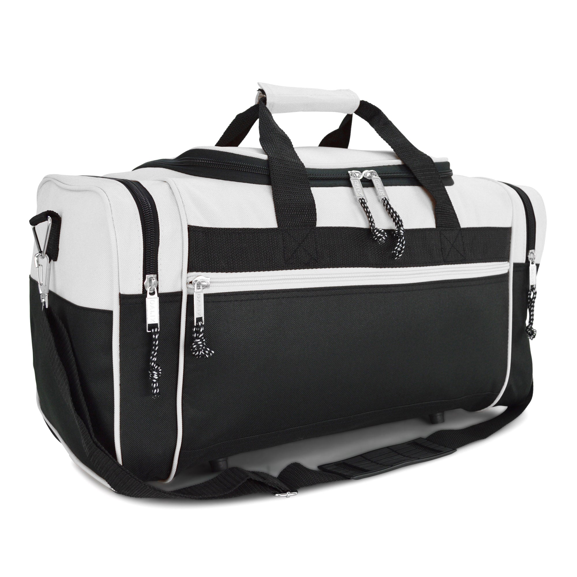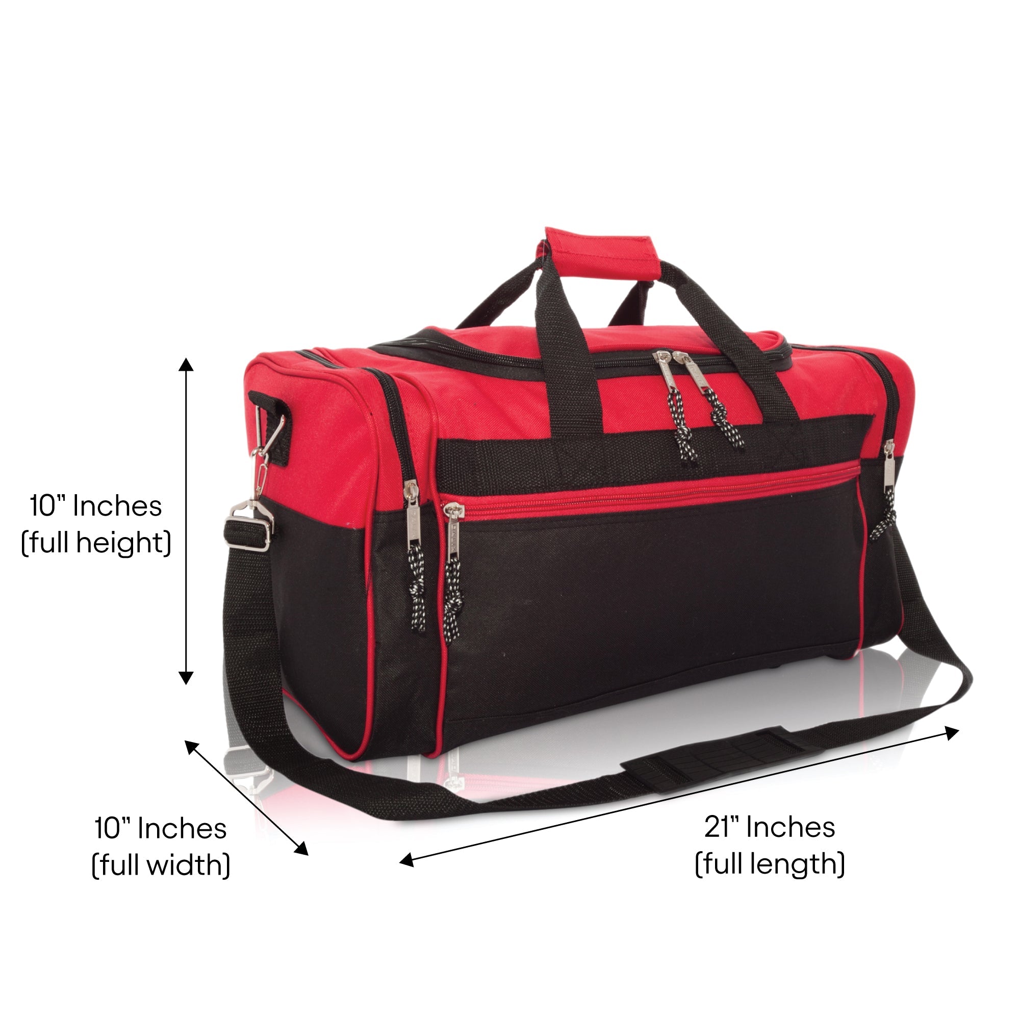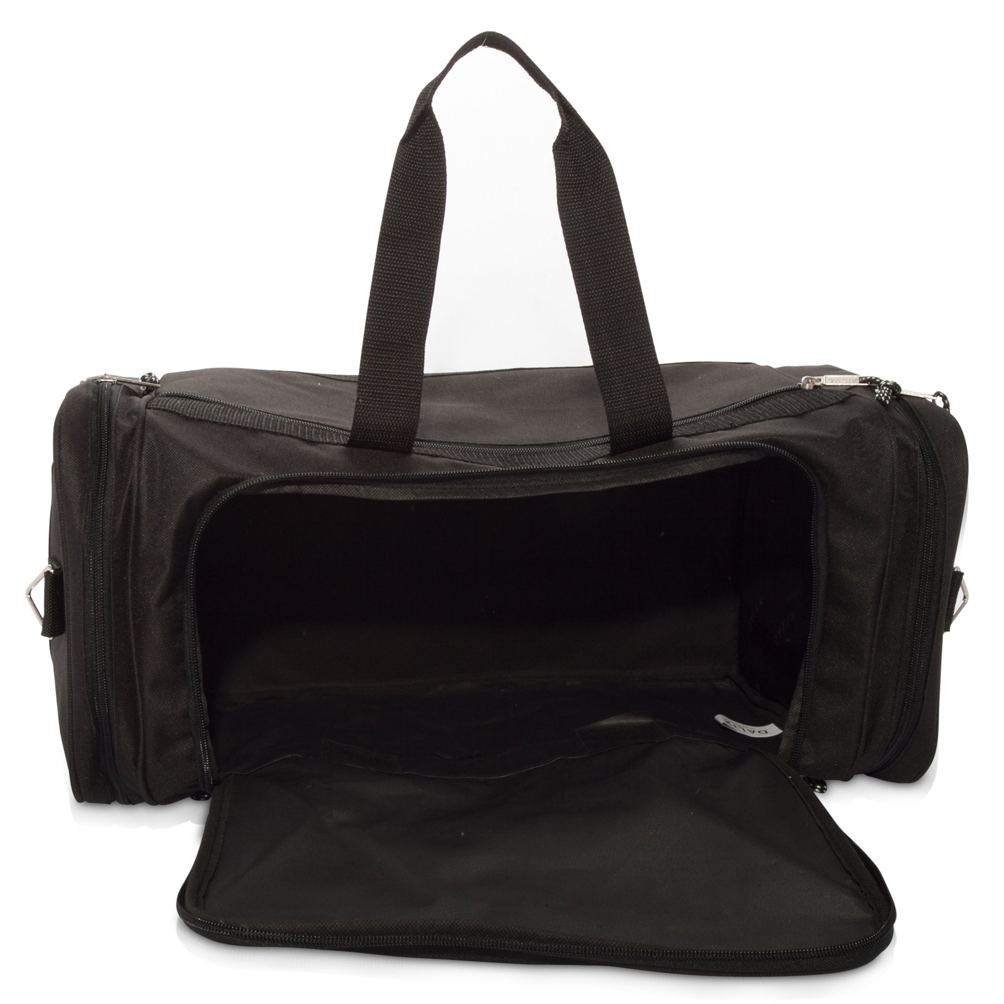 DALIX consistently reaches the pinnacle of affordable and useful everyday items. This is our 21" Duffel bag which has a top-entry Dual Zippered compartment for storage, along with that includes dual side zippered compartments for extra storage use of accessories, keys, water bottles, etc. Located on the front is another Zippered compartment for storage of smaller accessories or documents to take with you. Included is straps with shoulder pads.