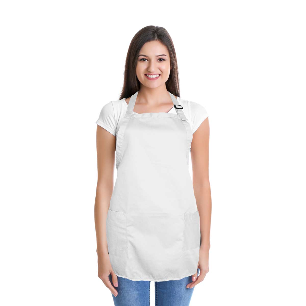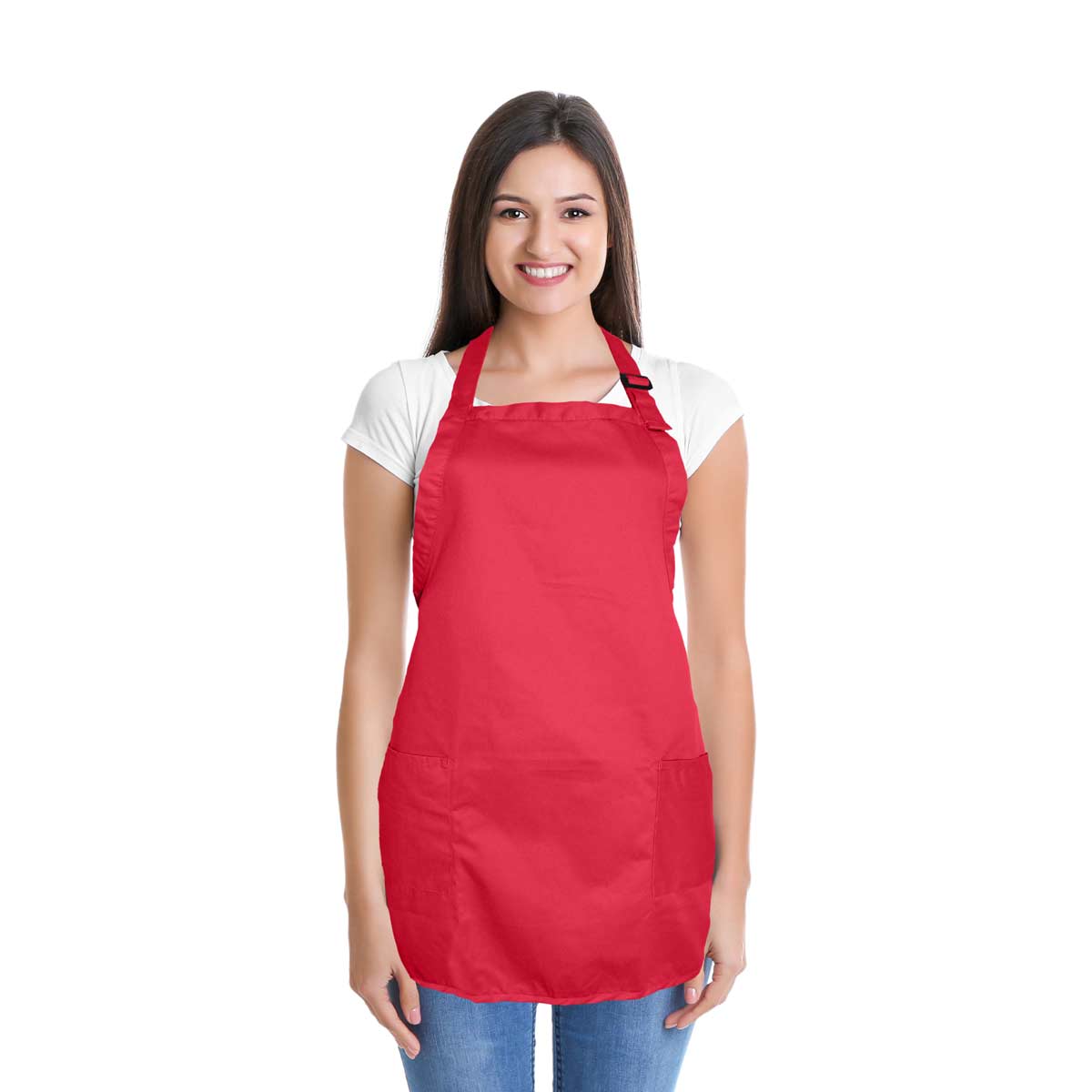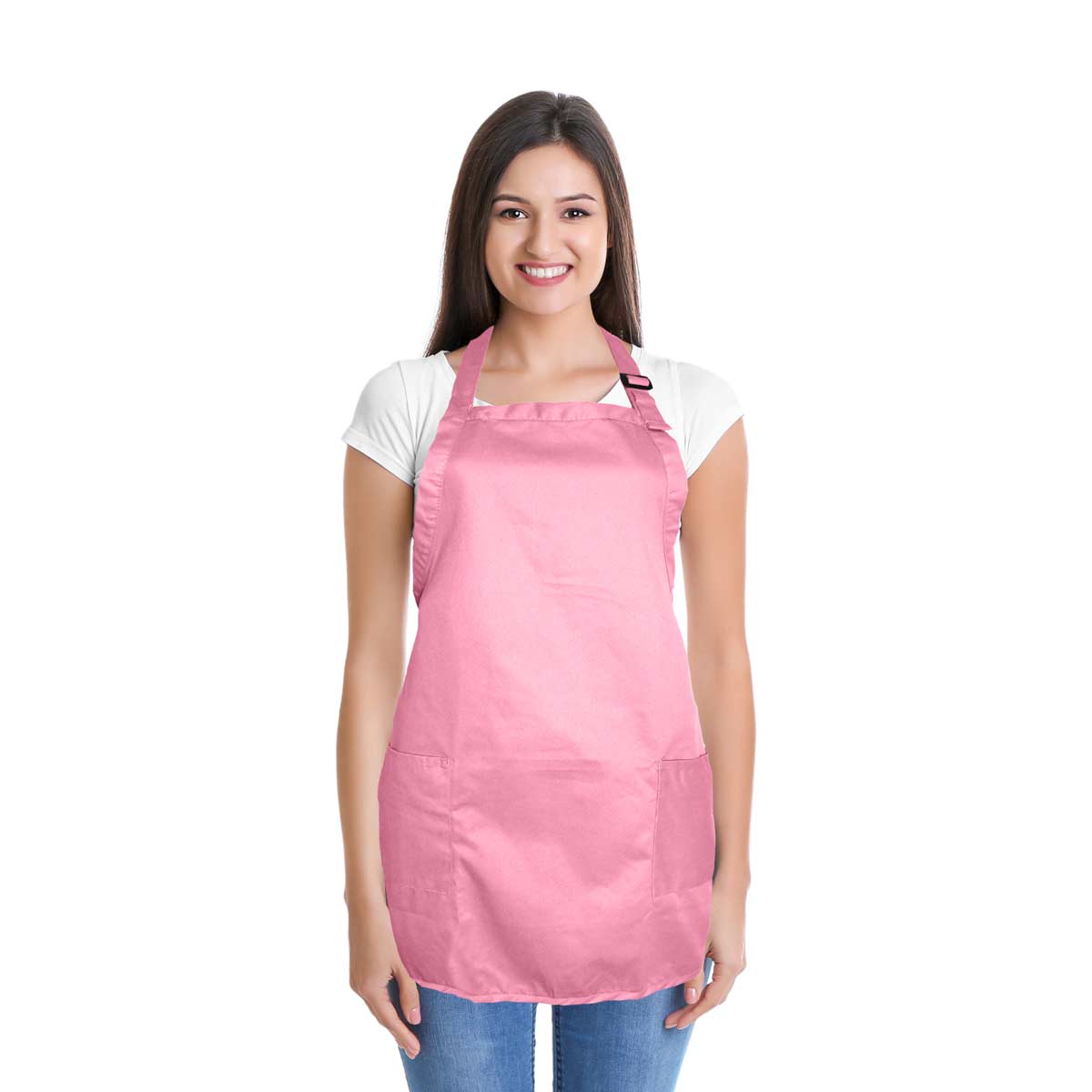 DALIX brings you the most economical and useful apron for less. Standard in the industry as poly-spun cotton material. Our bib apron is about 30" in height, about neck to upper thigh length. For Larger Sized Individuals. DALIX presents one of our most popular Aprons yet, the 30" Adjustable Poly Spun Cotton Apron. Whether you're an avid cooker interested in culinary arts, or working as a painter, bbq host, or need some protection from the elements, this apron will be able to keep your clothes clean underneath from your shoulders to your knees. COLOR(S): Red Black Dark Green Navy Blue Pink Purple Royal Blue White Yellow Striped Pink Striped Purple Striped Black