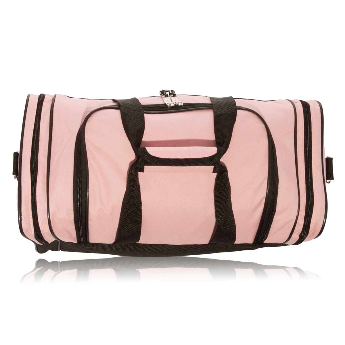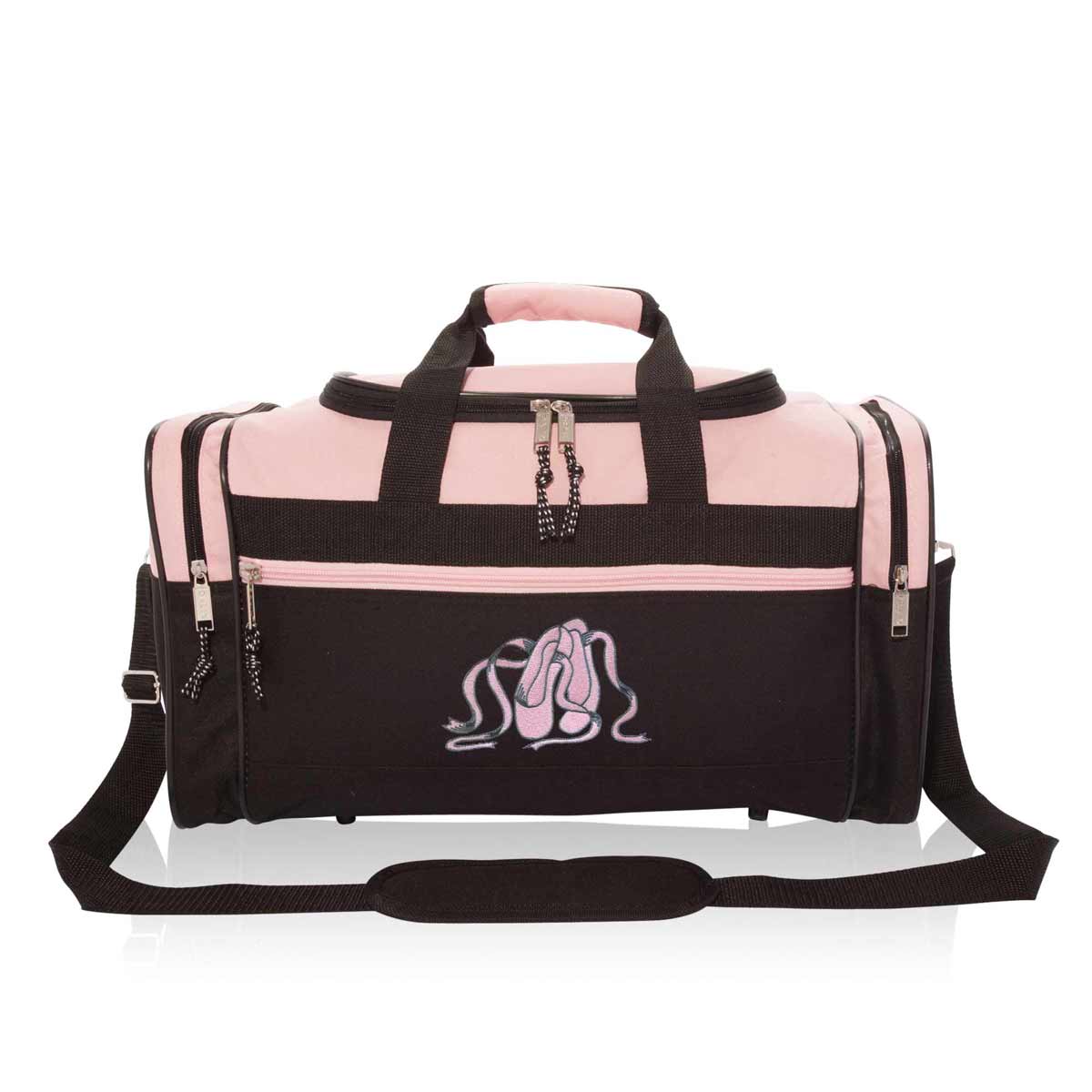 If you have danced at a pre-professional level for any length of time, you know a dance bag is essential. Not just any bag will do, but this bag will provide the space to store shoes and allow them to breathe, a full set of clothes or dancewear, and the compartments to store your basic necessities such as baby powder, deodorant, towels, perfumes, ointments, and waters. Express yourselves with our DALIX colorful gym bags in great style that lasts over time. Measuring at 17" length, our Medium Duffel Bag can be used for carrying any personal belongings, and its great sizing gives you the portability without having to deal with lugging a huge weight on you. Features an easy to access top-open double zipper main compartment (with a plastic gusset for support). On the sides of each main compartment, are two (approx. 2 inches thick) zippered pockets to place your belongings in on-the-go. There is a front-end zippered pocket for smaller items to place in also! All our designs are created with intricate details and embroidered with high quality threading to last the lifetime of the bag. Our goal is to help you express who you are on a dependable item for all your occasions. Comes in: Black , Pink