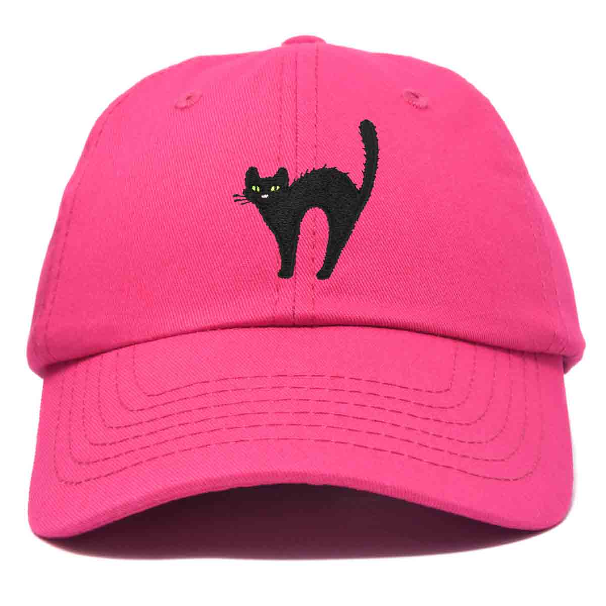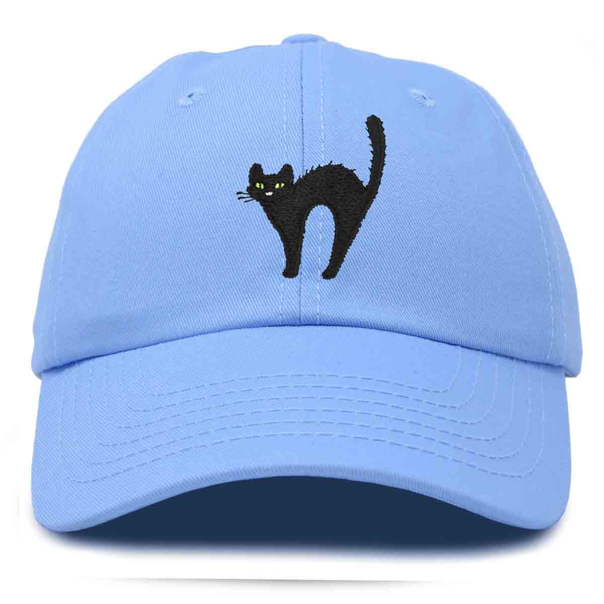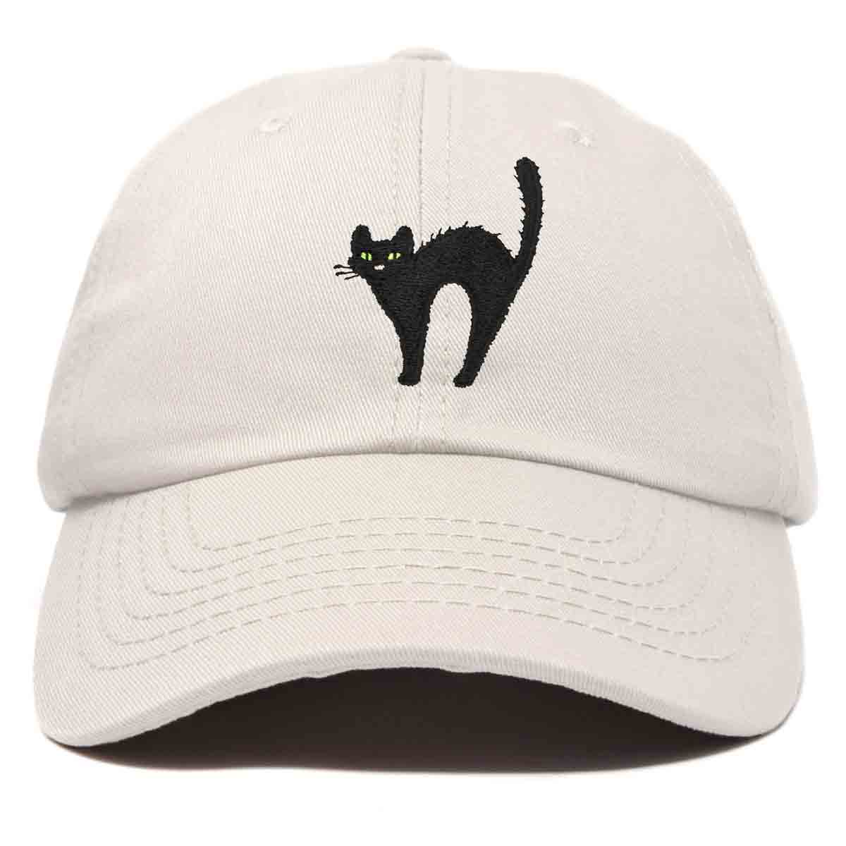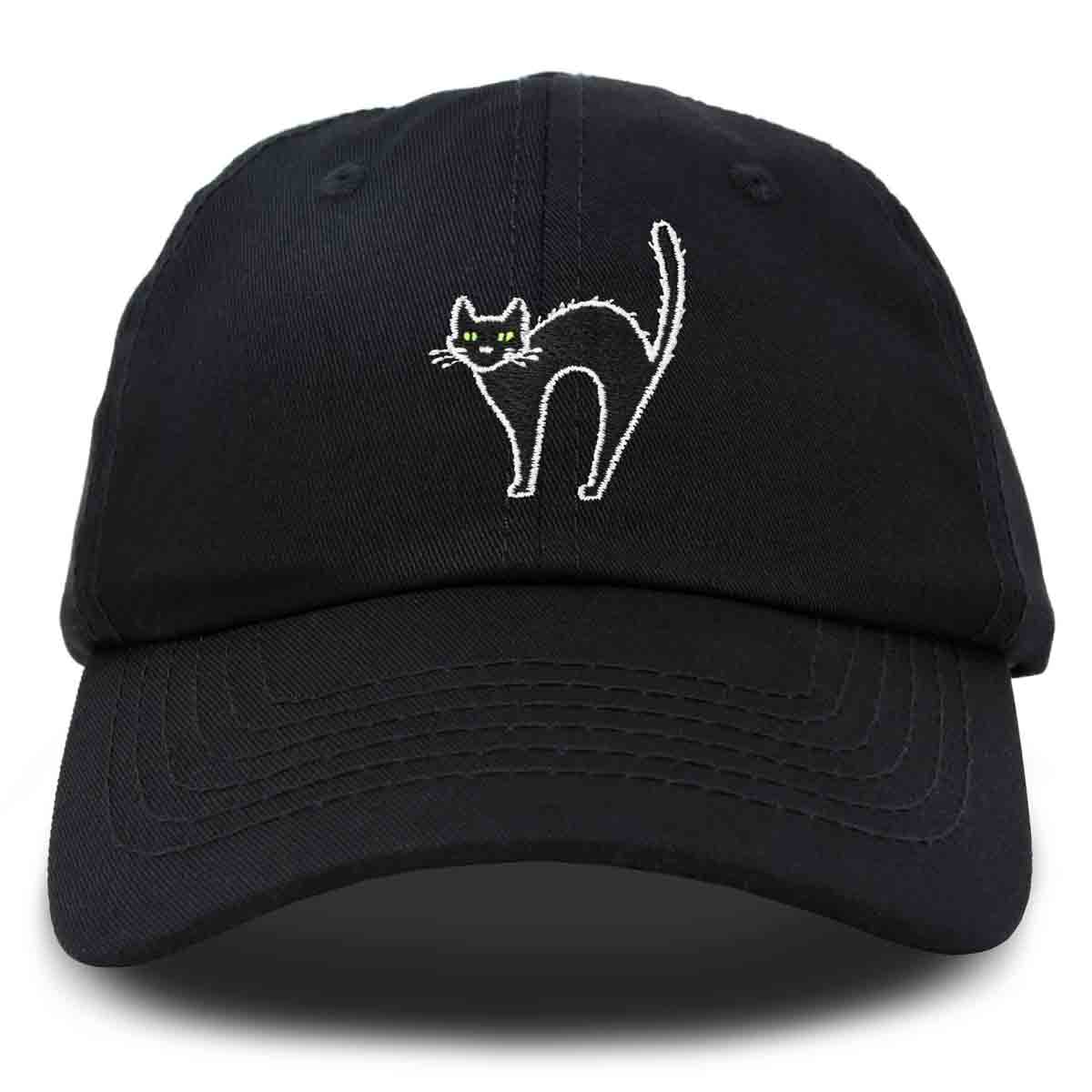 - CUSTOM DESIGNED HAT - Detailed Black Cat embroidered on front panel using Premium Stitched Threading