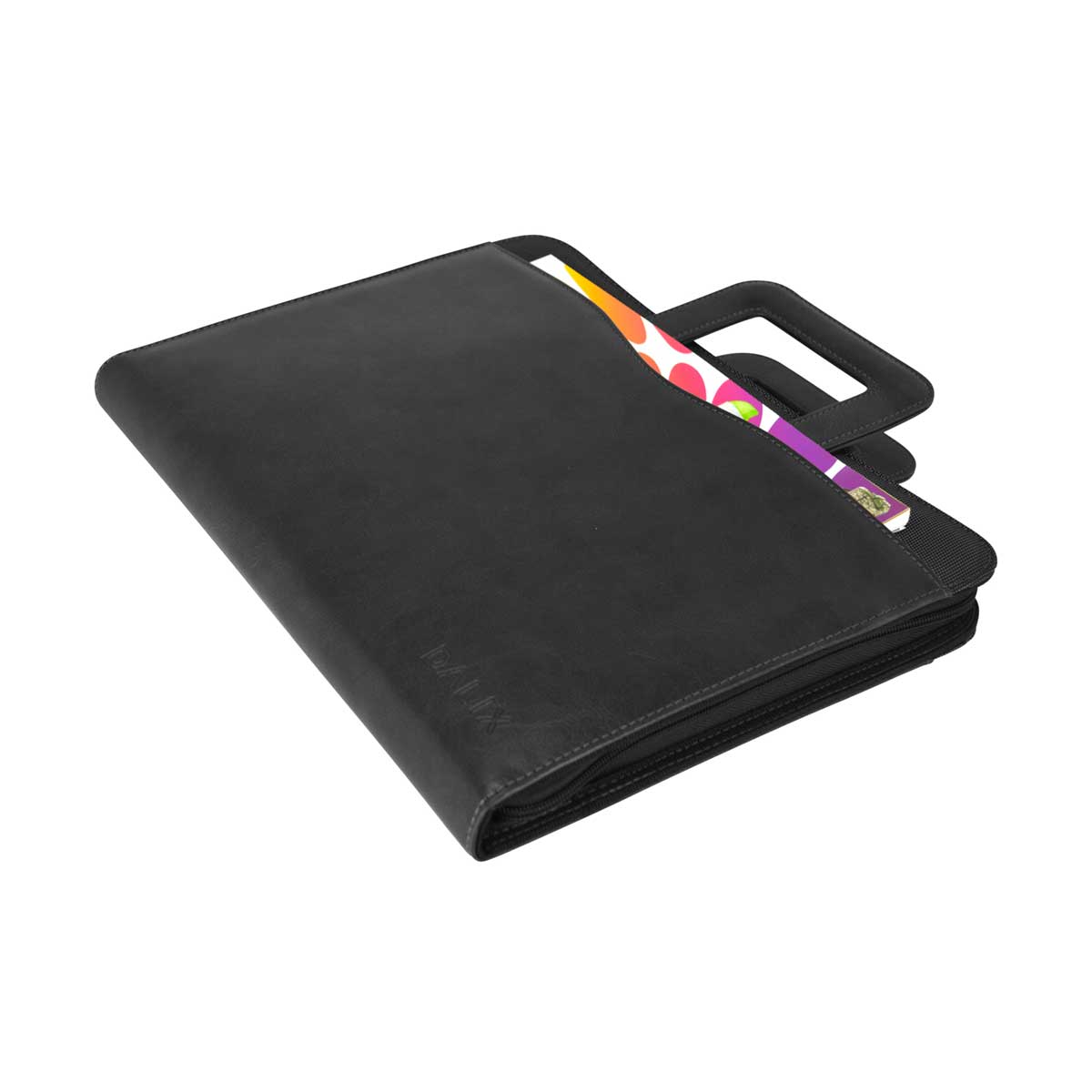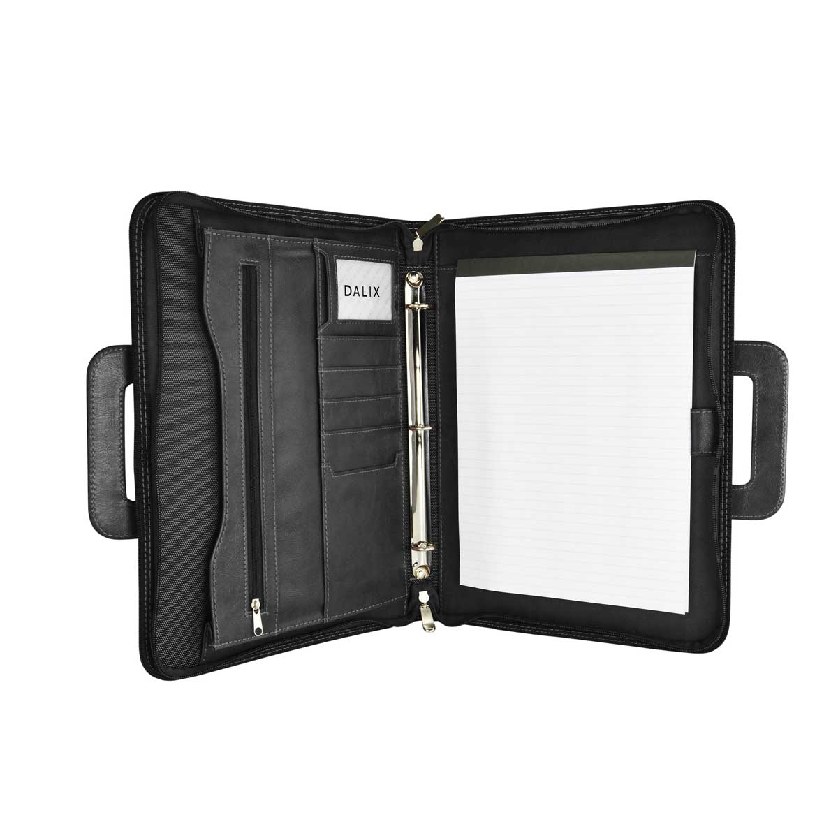 Our DALIX Excel product line elevates your professional experience with performance and functionality. This portfolio brief has a slim profile and sleek graphite design with many organizational features inside and out. The outside features two large versatile slot pockets with extending sliding handles for portability.
