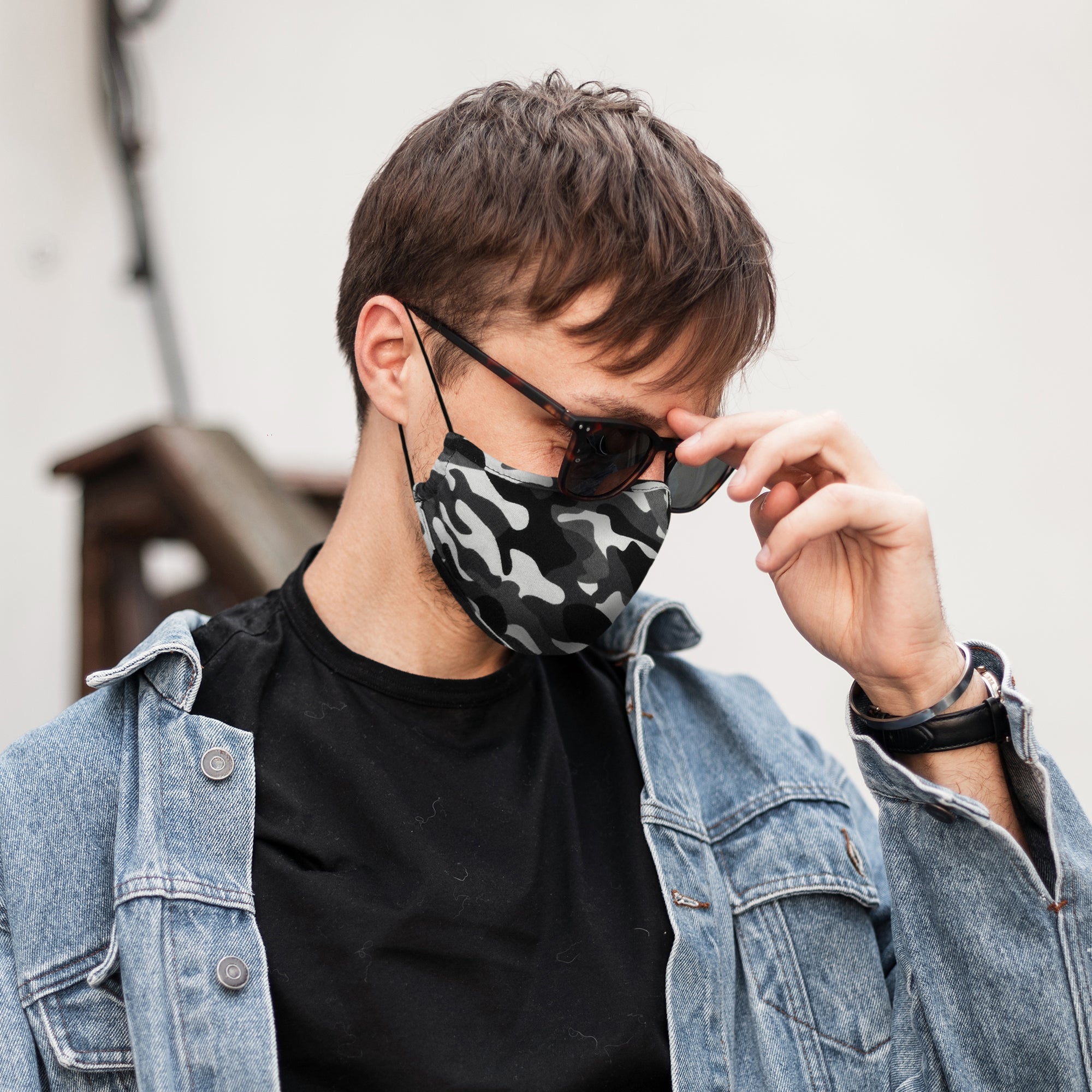 Safely Made in USA, Premium Cotton Personal Fashion Face Mask Adjustable Nose Piece Custom Designed Camo - S-M , L-XL