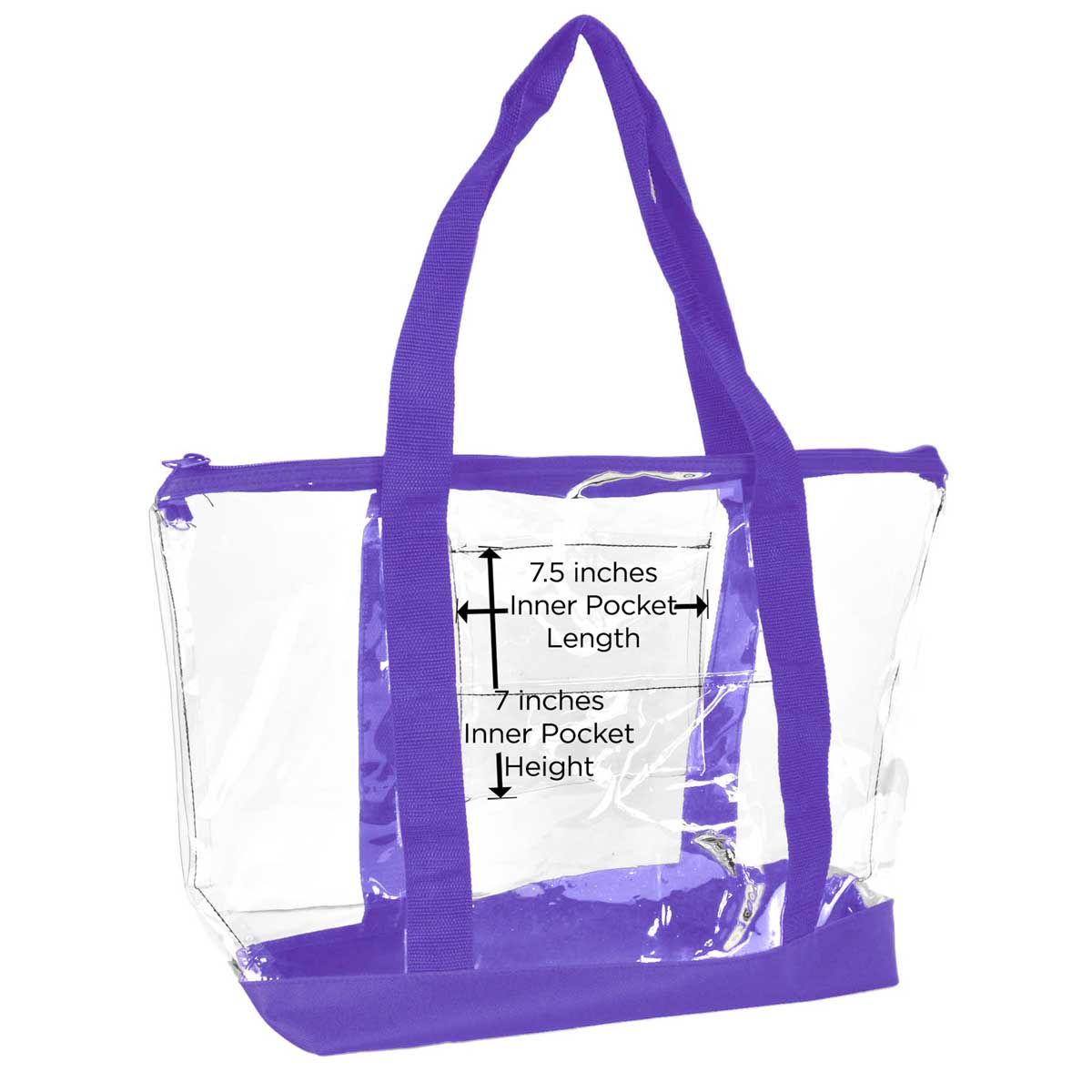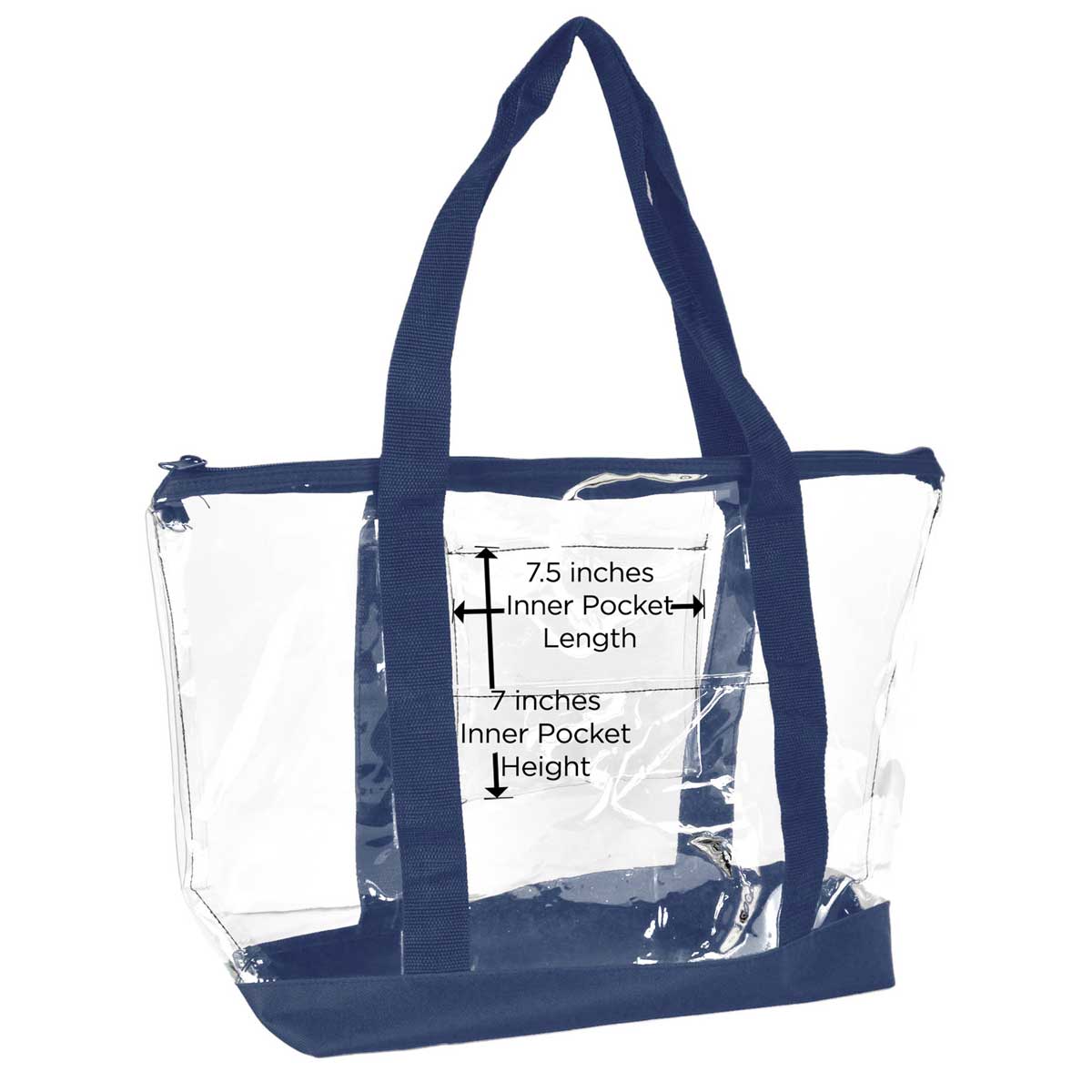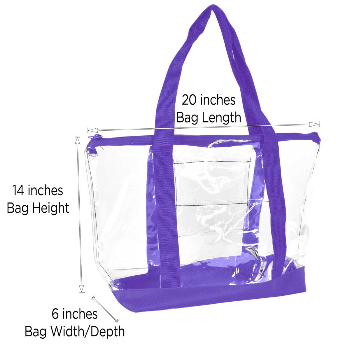 DALIX Transparent Totes provide a clear feeling to your shopping and carrier necessities. This ensure a safe shopping atmosphere and working environment. PVC Material with Polyester Straps, 3 compartments. Comes with 1 inner pocket and 1 outer pocket for easy cellphone grabbing or keys. You can put your valuables inside when you go to any sporting events such as baseball, football, basketball or security in corrections facilities, hospitals and much more. Built to last, we put pride in every bag, and offer our warranty that it will last through the ages.