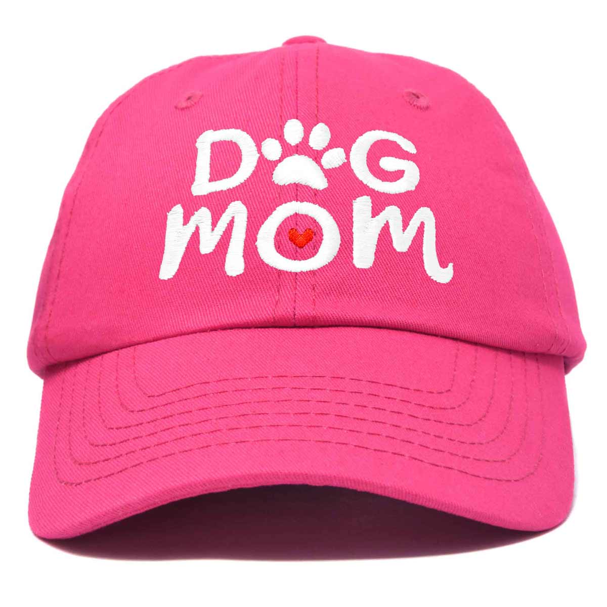 Custom Dog Mom embroidered design logo, fits most Adults, this hat features an adjustable metal buckle.