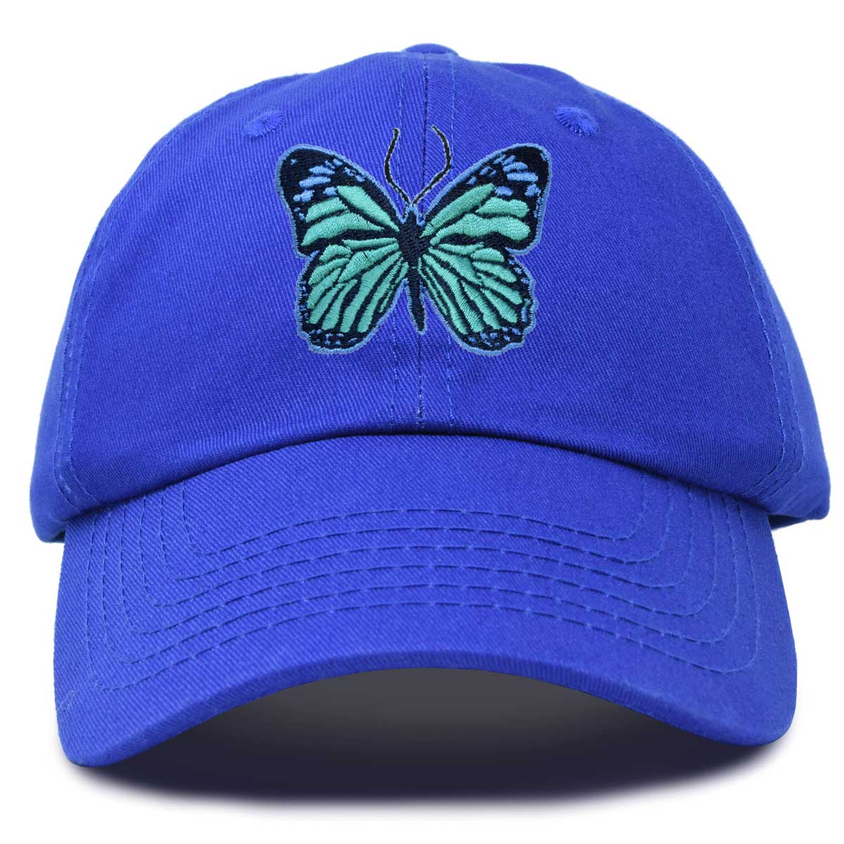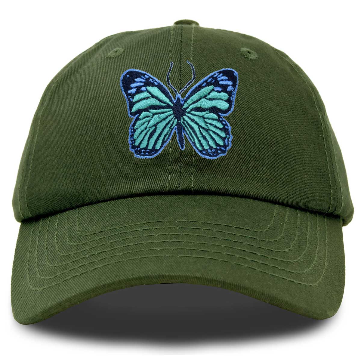 Butterflies are one of the most beautiful insects known in nature, we must mind our environment because they are reacting negatively to the pollution of the earth. Gift this to your mom, sister, grandma, or anyone that you would like enjoys a butterfly's glory. This design was to keep in mind the beauty of nature versus the beauty of oneself; at first glance this design seems almost iridescent with its detailed thread quality. All butterfly lovers will appreciate this cap, express yourselves with our 100% cotton cap in a great style that lasts over time. With our soft padded sweat band, this hat will fit great and gently on your head without aggravating the skin. Features an adjustable Size Buckle Strap, Soft inner sweat band lining.