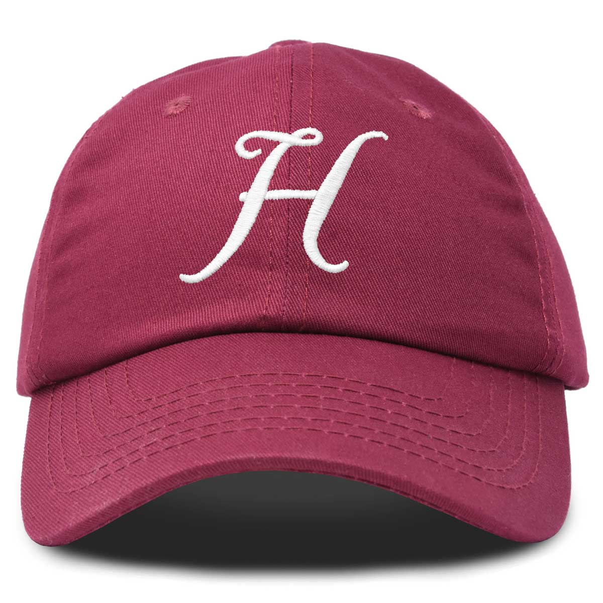 DALIX Initial Letter H Hat, looking for a Hat with a first Initial for your Name, Team, Organization, Friend or Family Member? DALIX has carefully designed and embroidered the best quality letter A-Z initial cotton caps for personal use or gifting. Our personalized custom monogrammed and developed "Ballent" font is one of a kind, and sure to last over time. With our soft padded sweat band, this hat will fit great and gently on your head without aggravating the skin. Features Adjustable Size Buckle Strap, Soft inner sweat band lining.