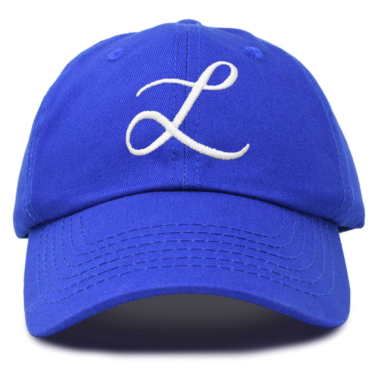 DALIX Initial Letter L Hat, looking for a Hat with a first Initial for your Name, Team, Organization, Friend or Family Member? DALIX has carefully designed and embroidered the best quality letter A-Z initial cotton caps for personal use or gifting. Our personalized custom monogrammed and developed "Ballent" font is one of a kind, and sure to last over time. With our soft padded sweat band, this hat will fit great and gently on your head without aggravating the skin. Features Adjustable Size Buckle Strap, Soft inner sweat band lining.