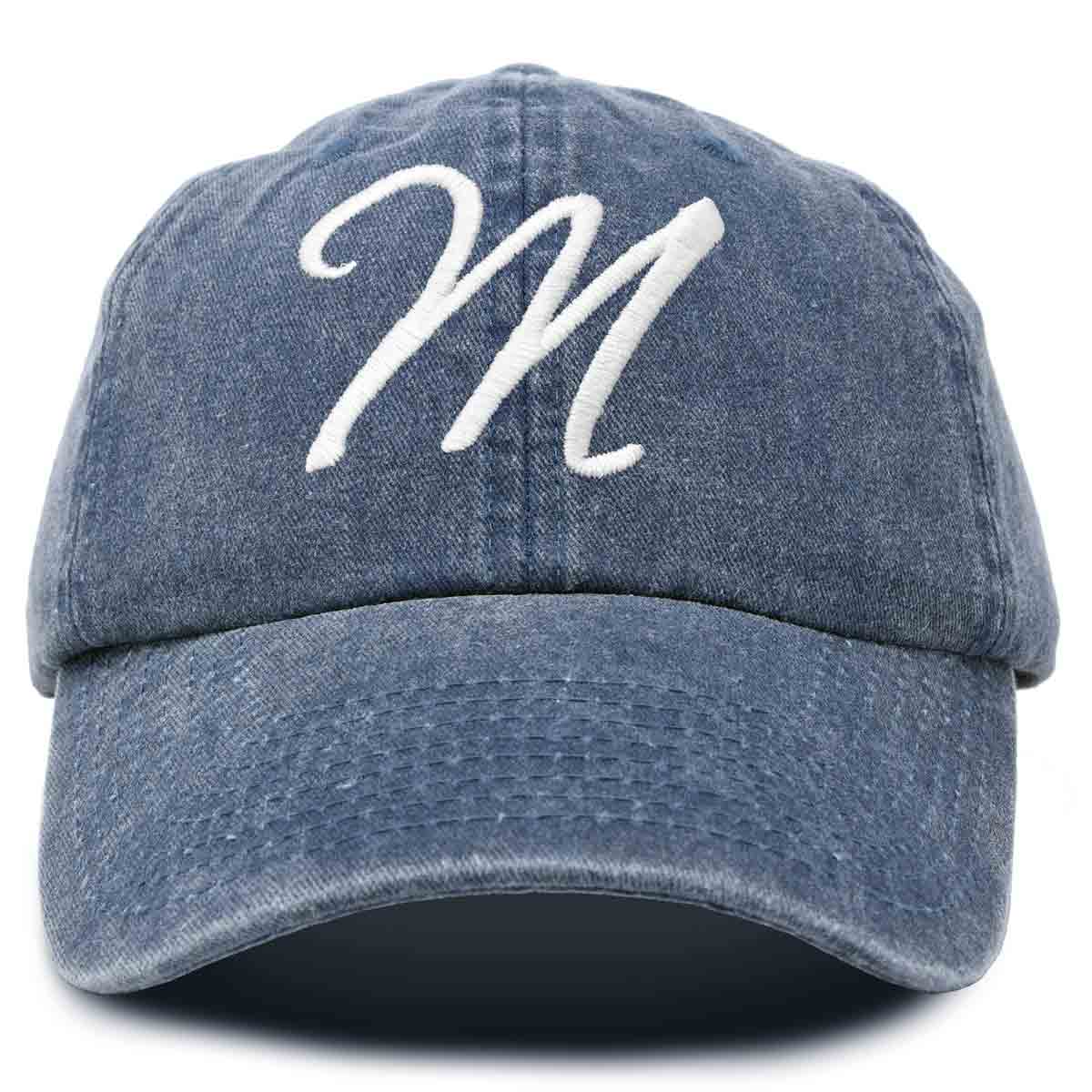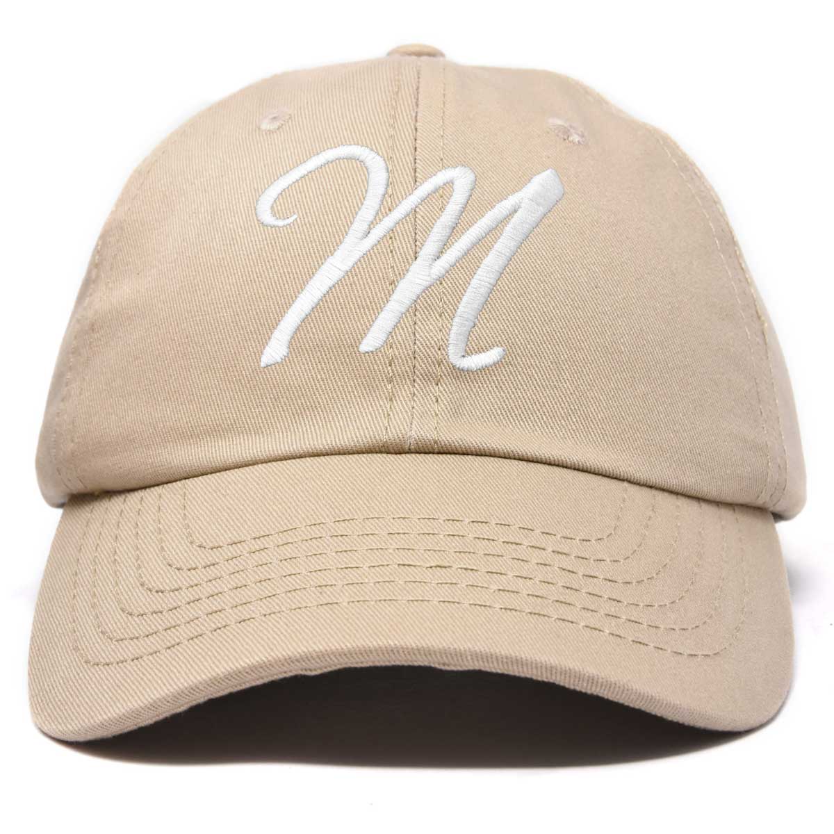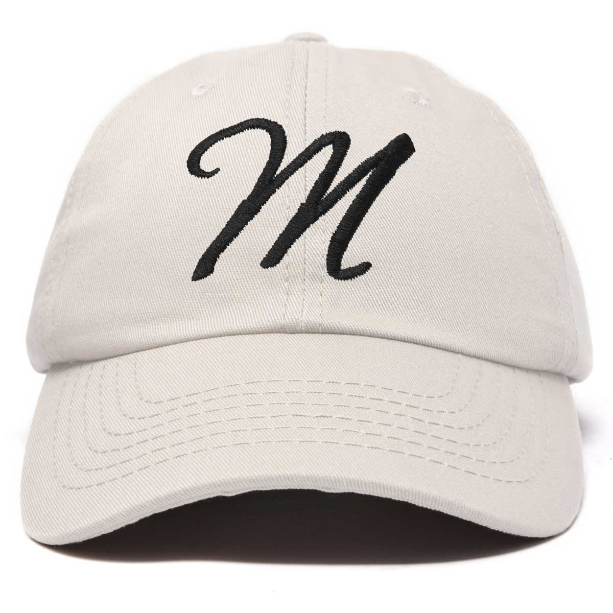 DALIX Initial Letter M Hat, looking for a Hat with a first Initial for your Name, Team, Organization, Friend or Family Member? DALIX has carefully designed and embroidered the best quality letter A-Z initial cotton caps for personal use or gifting. Our personalized custom monogrammed and developed "Ballent" font is one of a kind, and sure to last over time. With our soft padded sweat band, this hat will fit great and gently on your head without aggravating the skin. Features Adjustable Size Buckle Strap, Soft inner sweat band lining.