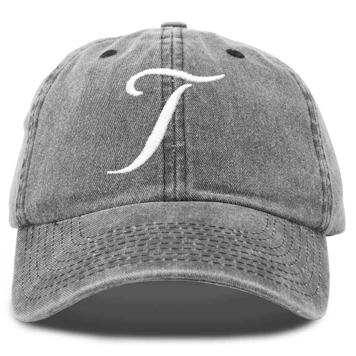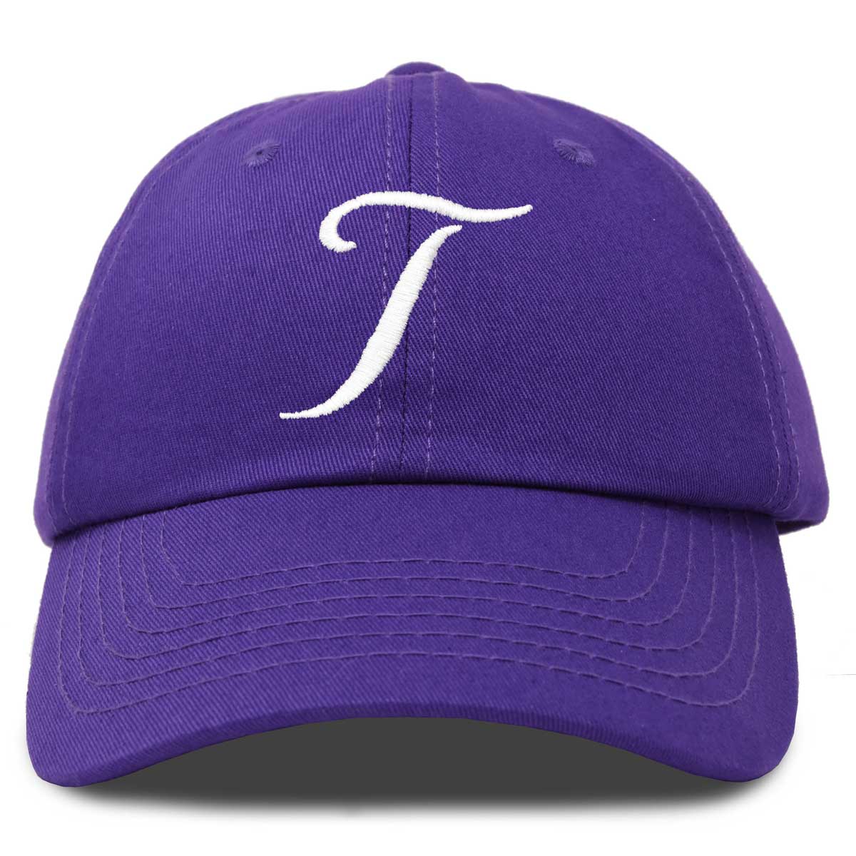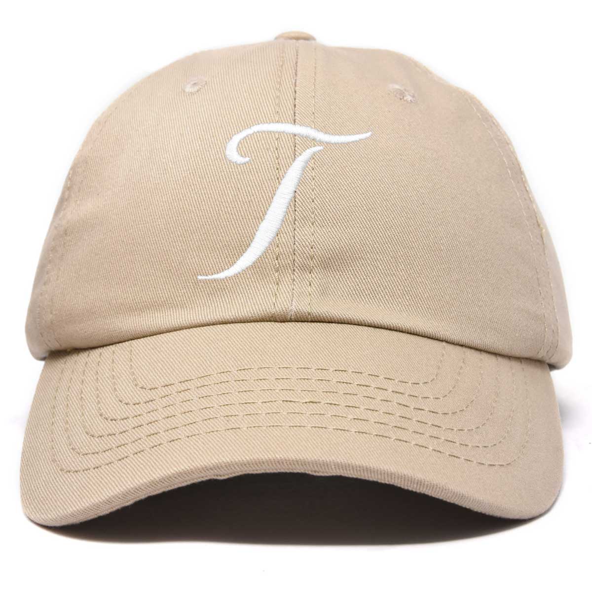 DALIX Initial Letter T Hat, looking for a Hat with a first Initial for your Name, Team, Organization, Friend or Family Member? DALIX has carefully designed and embroidered the best quality letter A-Z initial cotton caps for personal use or gifting. Our personalized custom monogrammed and developed "Ballent" font is one of a kind, and sure to last over time. With our soft padded sweat band, this hat will fit great and gently on your head without aggravating the skin. Features Adjustable Size Buckle Strap, Soft inner sweat band lining.