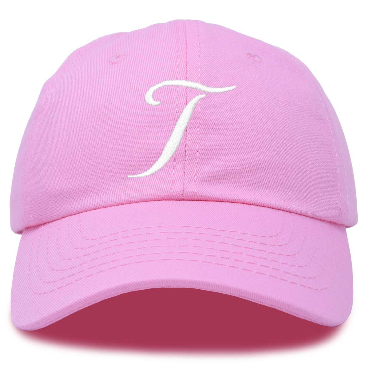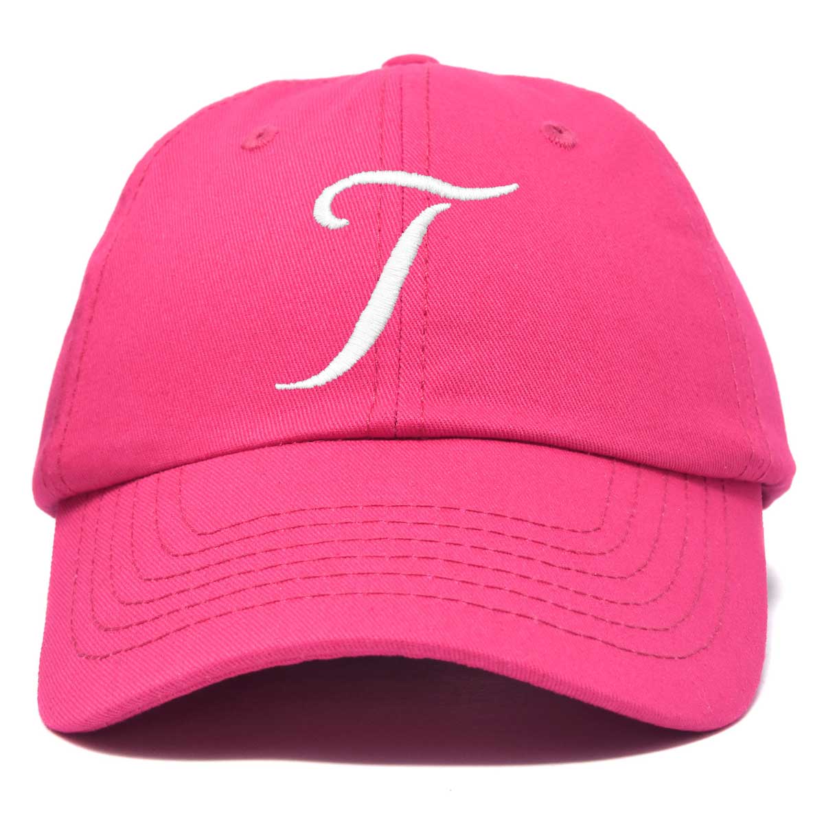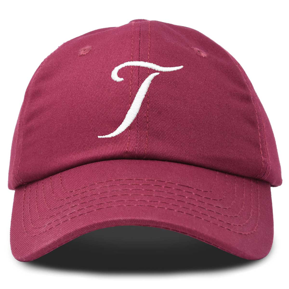 DALIX Initial Letter T Hat, looking for a Hat with a first Initial for your Name, Team, Organization, Friend or Family Member? DALIX has carefully designed and embroidered the best quality letter A-Z initial cotton caps for personal use or gifting. Our personalized custom monogrammed and developed "Ballent" font is one of a kind, and sure to last over time. With our soft padded sweat band, this hat will fit great and gently on your head without aggravating the skin. Features Adjustable Size Buckle Strap, Soft inner sweat band lining.