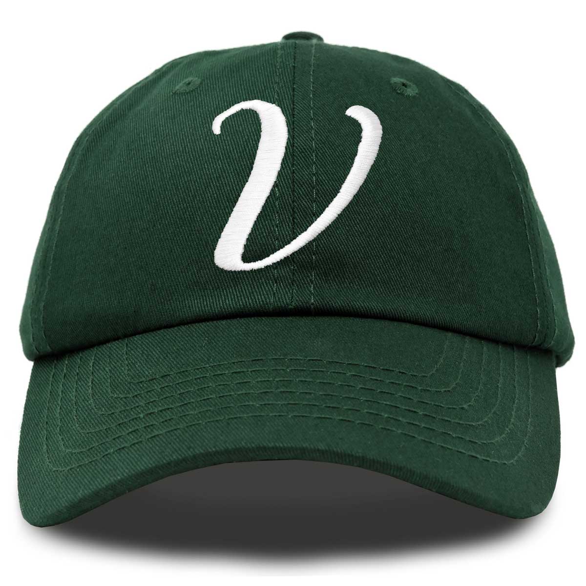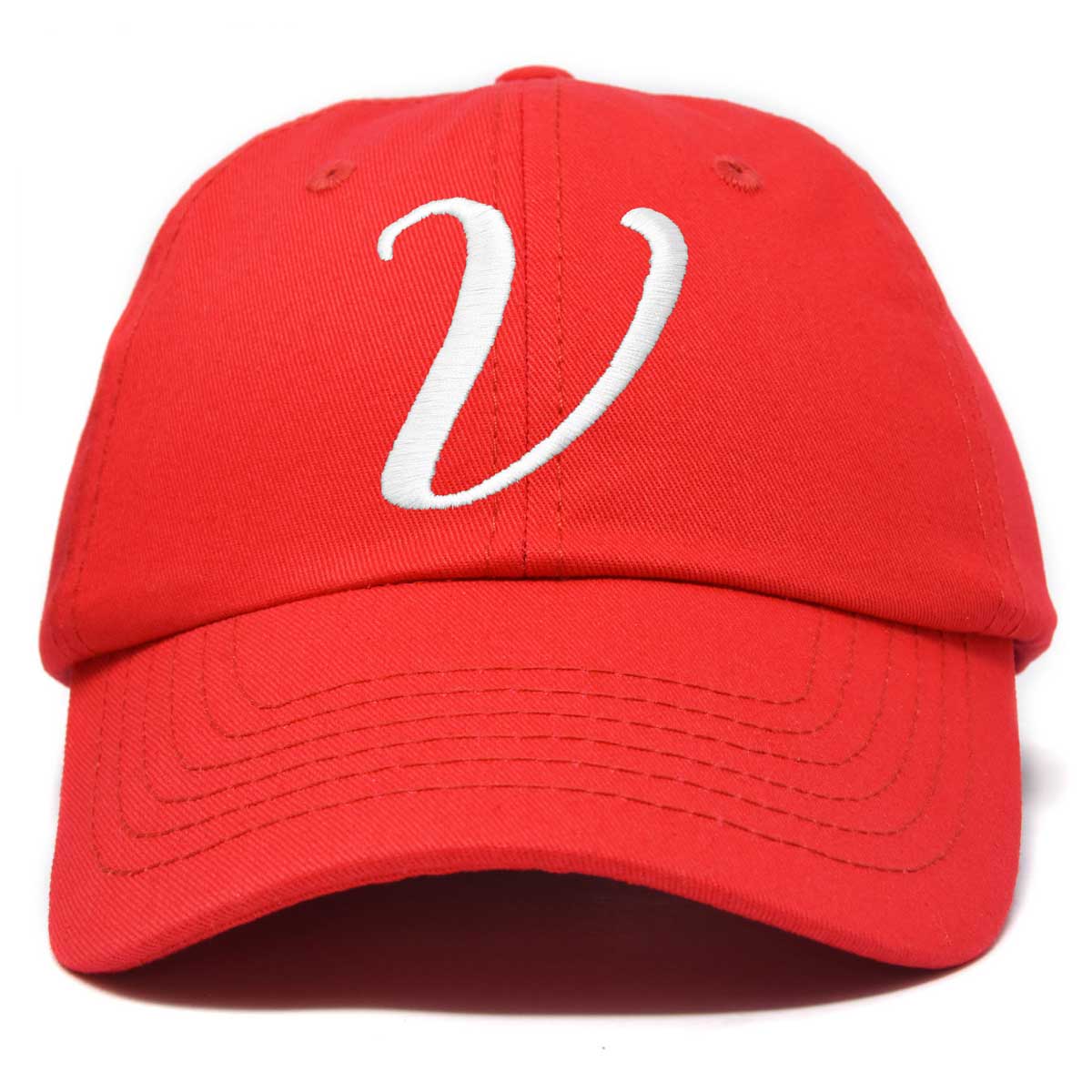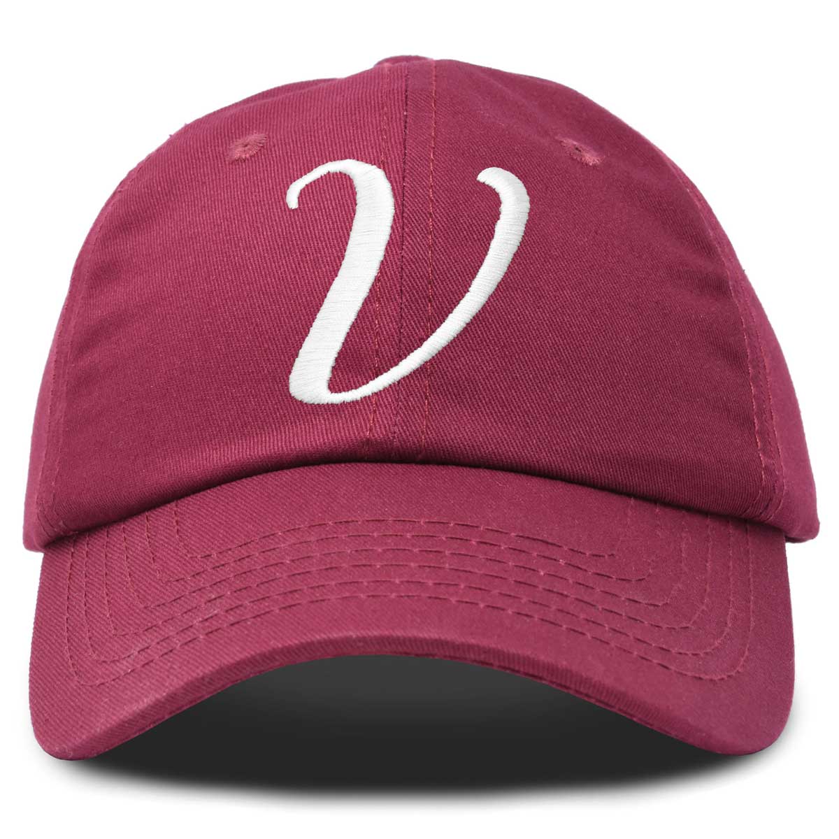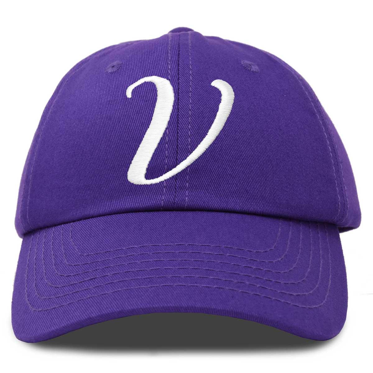DALIX Initial Letter V Hat, looking for a Hat with a first Initial for your Name, Team, Organization, Friend or Family Member? DALIX has carefully designed and embroidered the best quality letter A-Z initial cotton caps for personal use or gifting. Our personalized custom monogrammed and developed "Ballent" font is one of a kind, and sure to last over time. With our soft padded sweat band, this hat will fit great and gently on your head without aggravating the skin. Features Adjustable Size Buckle Strap, Soft inner sweat band lining.