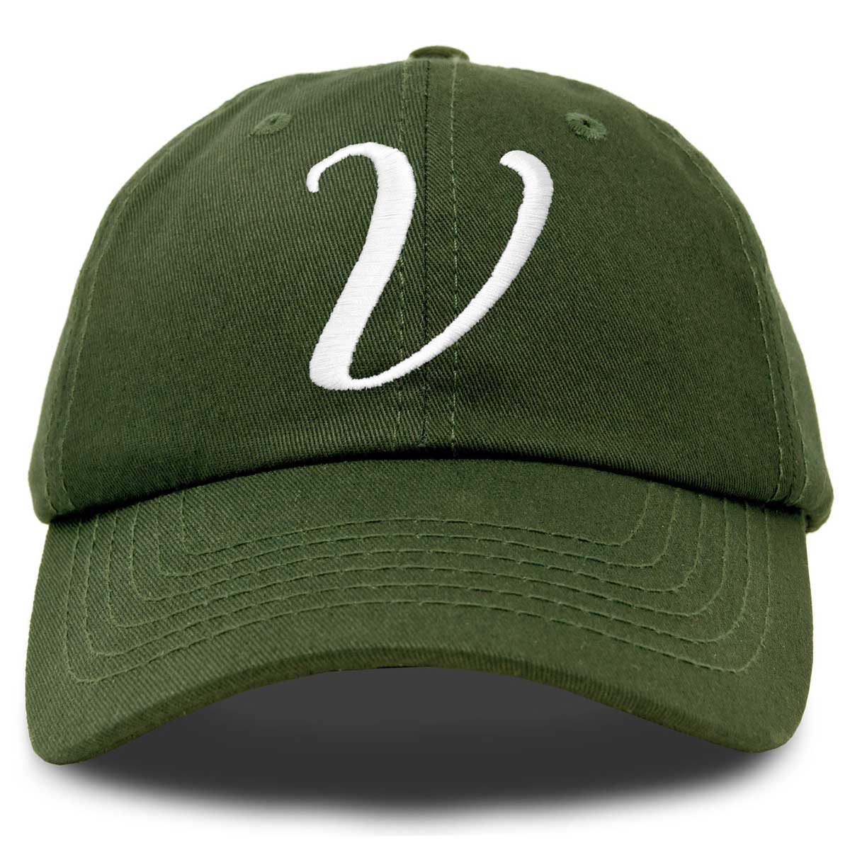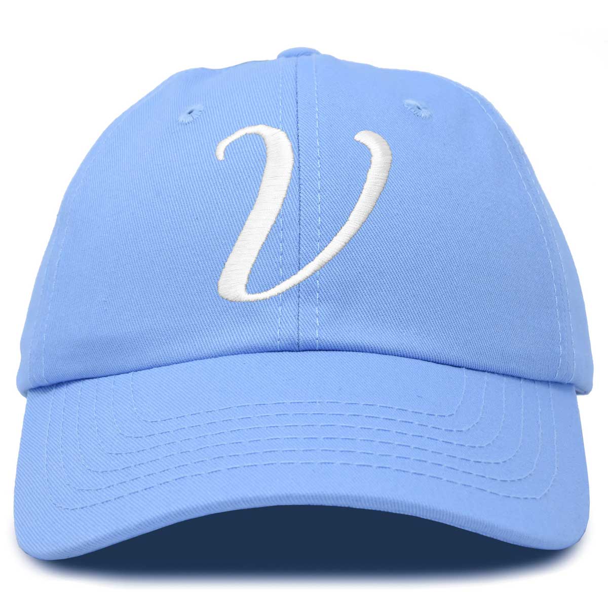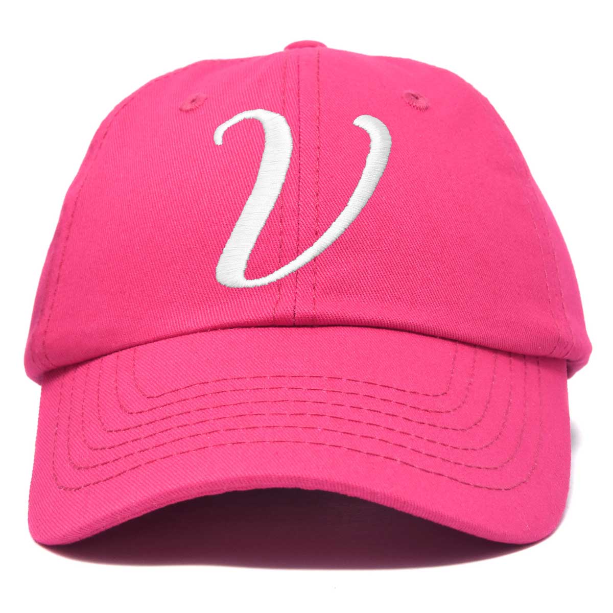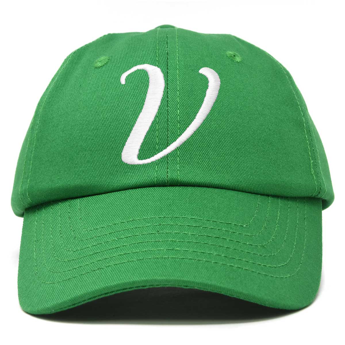 DALIX Initial Letter V Hat, looking for a Hat with a first Initial for your Name, Team, Organization, Friend or Family Member? DALIX has carefully designed and embroidered the best quality letter A-Z initial cotton caps for personal use or gifting. Our personalized custom monogrammed and developed "Ballent" font is one of a kind, and sure to last over time. With our soft padded sweat band, this hat will fit great and gently on your head without aggravating the skin. Features Adjustable Size Buckle Strap, Soft inner sweat band lining.