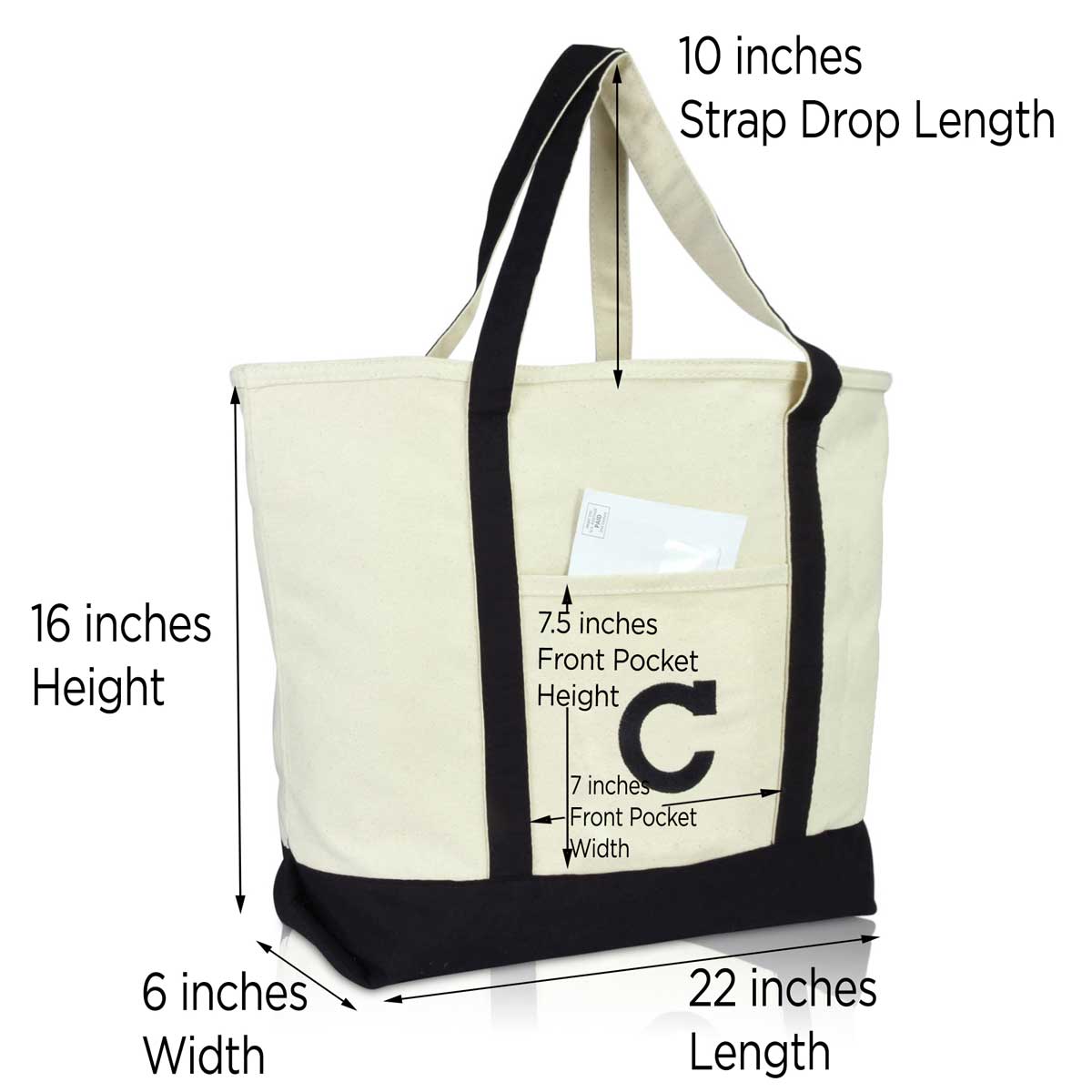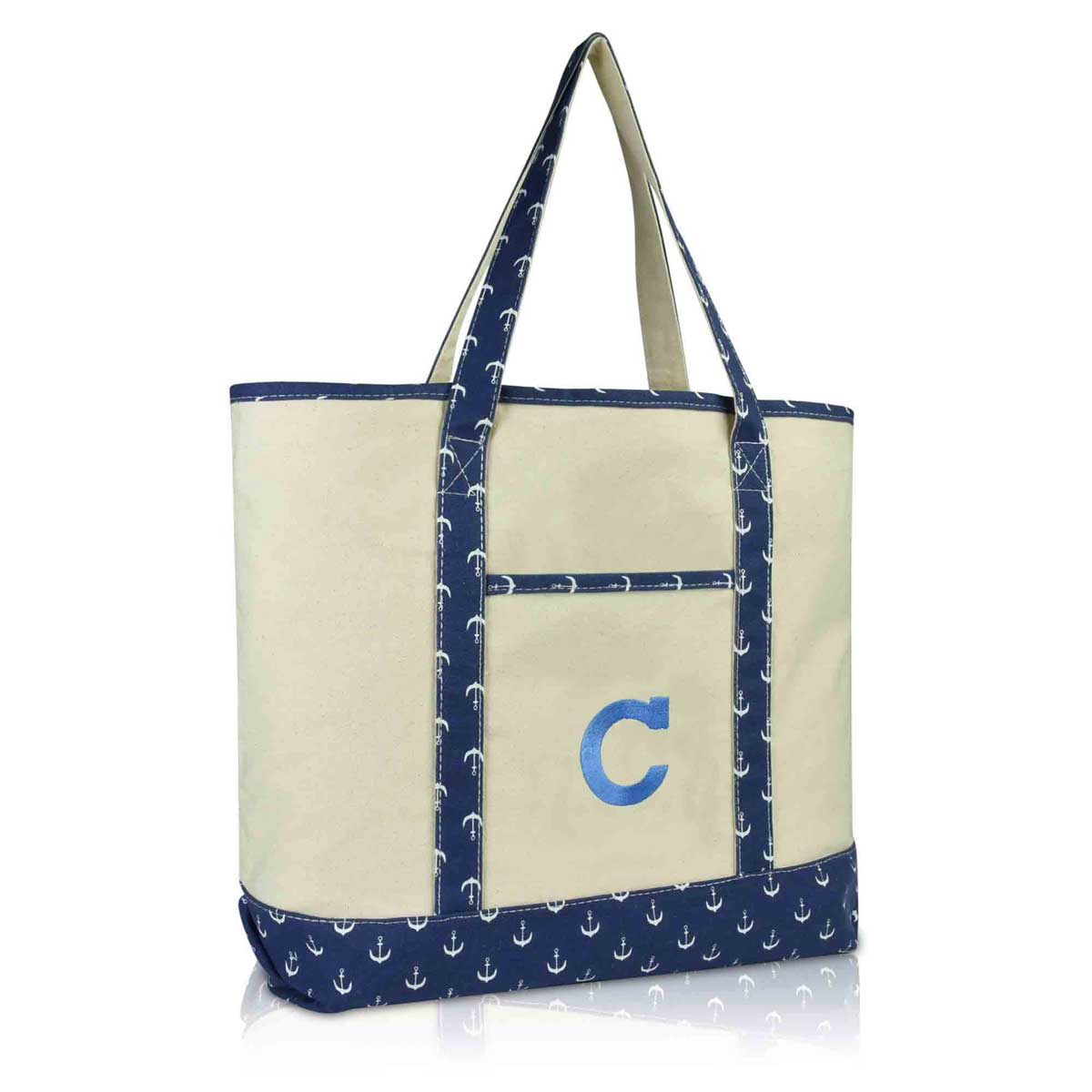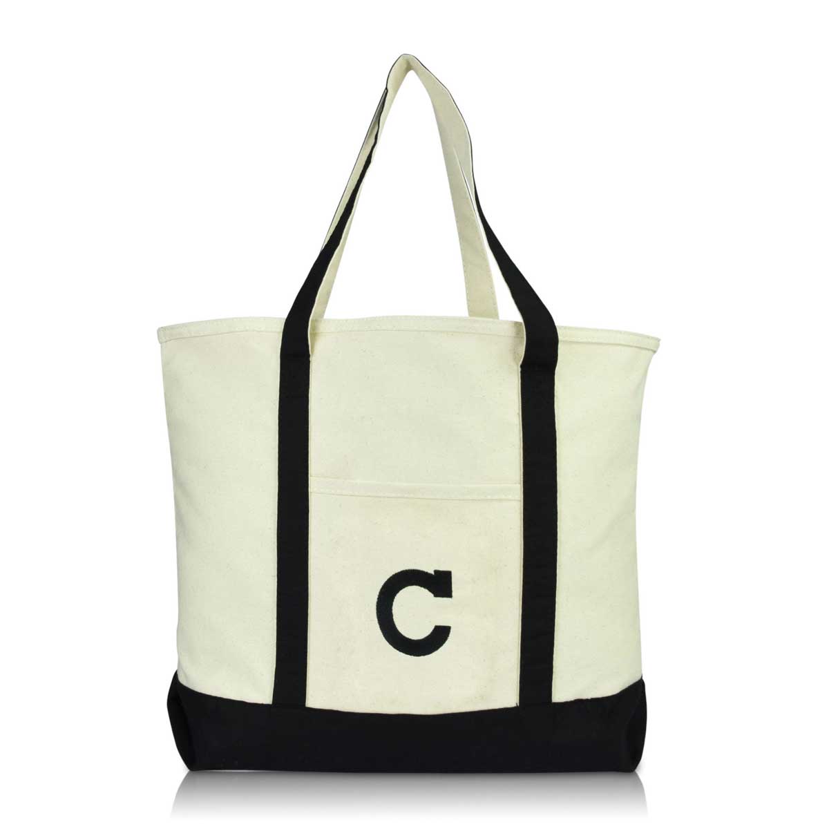 Our best selling DALIX tote for women of all ages, now features beautiful premium embroidery initial of your choice! Custom designed, our tote features a beautiful monogram letter "C" of your favorite name or word! Sewn with premium threading, each tote has a different color theme with a complementing letter color. We ensure an ever-lasting embroidery design on our tote bags. Suitable to carry on you for days out at the beach, grocery shopping at the market, or simply carrying it to work with you. And if you're a student or teacher, what better tote to carry into class with your textbooks and folders? It is also perfect as a personalized gift for weddings and holidays to your friends, family, or even if it is a special gift to yourself. This tote features a heavy duty 12 oz. cotton canvas material with a zipper closure for safety when you travel to ensure your accessories and belongings don't fall out. There is also a front pocket for accessories storage, and comes in more wonderful colors! For those on a budget but still wanting a quality product, this is a great gift under 20 dollars which will last for time to come.