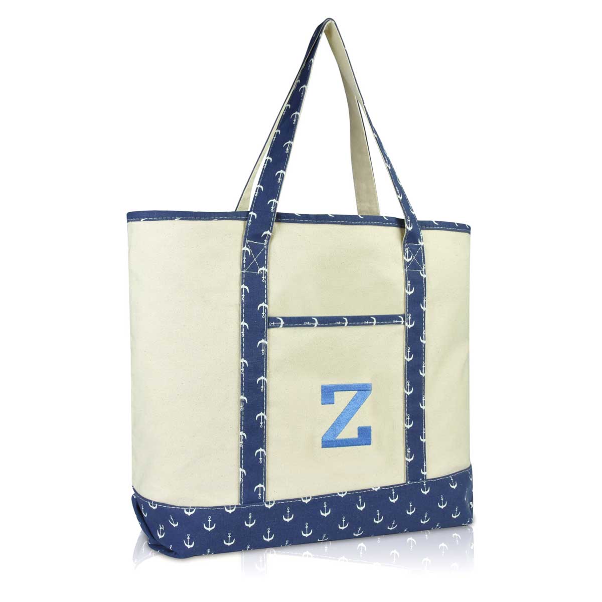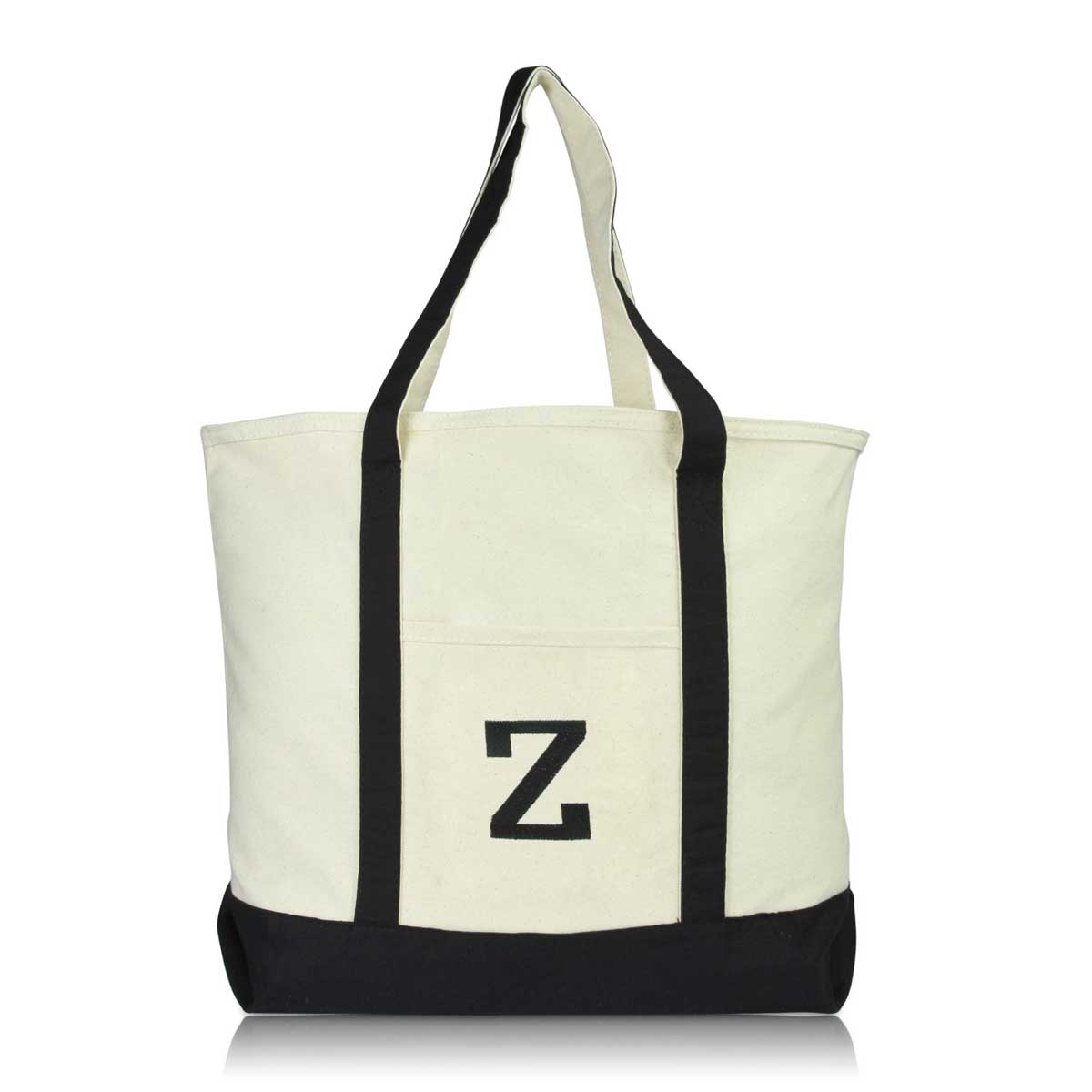 Our best selling DALIX tote for women of all ages, now features beautiful premium embroidery initial of your choice! Custom designed, our tote features a beautiful monogram letter "Z" of your favorite name or word! Sewn with premium threading, each tote has a different color theme with a complementing letter color. We ensure an ever-lasting embroidery design on our tote bags. Suitable to carry on you for days out at the beach, grocery shopping at the market, or simply carrying it to work with you. And if you're a student or teacher, what better tote to carry into class with your textbooks and folders? It is also perfect as a personalized gift for weddings and holidays to your friends, family, or even if it is a special gift to yourself. This tote features a heavy duty 12 oz. cotton canvas material with a zipper closure for safety when you travel to ensure your accessories and belongings don't fall out. There is also a front pocket for accessories storage, and comes in more wonderful colors! For those on a budget but still wanting a quality product, this is a great gift under 20 dollars which will last for time to come.