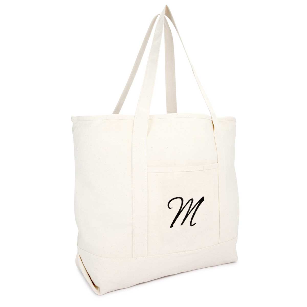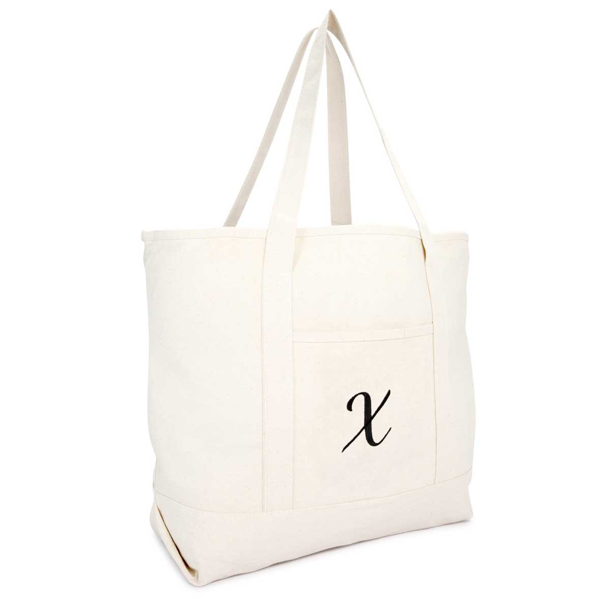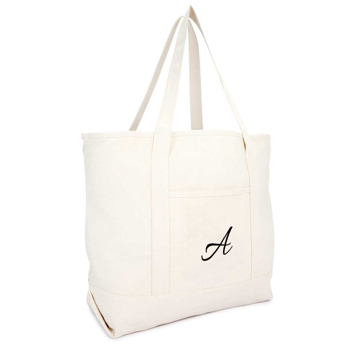 DALIX now features an addition to our best selling totes, beautiful premium embroidery: Our upgraded tote features an embroidered monogram alphabet letter chosen by you. Feel free to browse each letter option to see the fine sewn details. With premium threading, we ensure an elegant and lasting design. This tote features a heavy duty 12 oz. cotton canvas material for most shopping goods and heavy duty material strap to ensure carrying durability. There is also a front pocket (8" Height x 8" Width) for your accessories, and also an Inner Zippered Pocket (Inner Pocket Dimensions: 7" Height x 7" Width). Also, it comes in more wonderful colors!