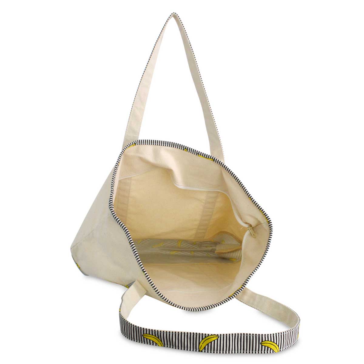 - Custom Embroidered Letter in Striped Banana, Zippered Top Compartment, Open Front Pocket, 9" Drop Handles
