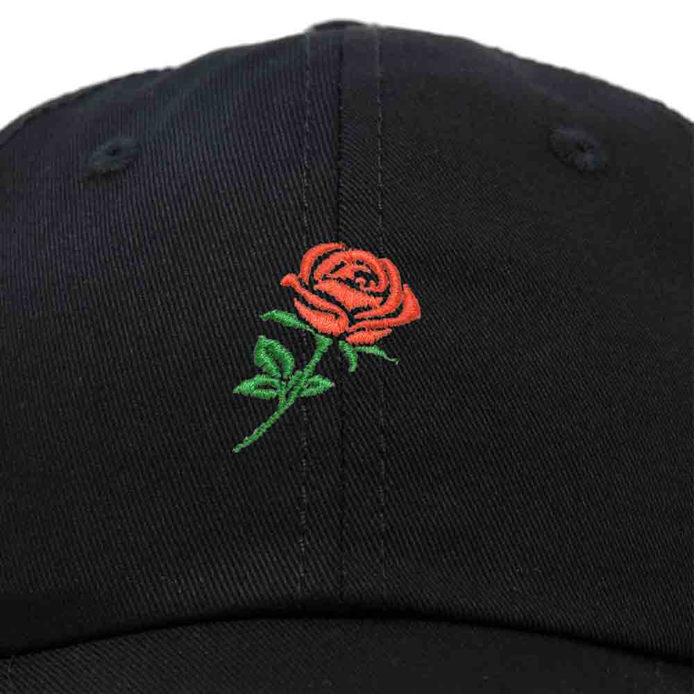 Our red rose dad hat is sure to turn heads. Elegant in nature and embroidered to perfection on a unstructured baseball cap. Green stems capture the essence of the beauty with great premium stitching. Express yourselves with our 100% cotton cap in a great style that lasts over time. With our soft padded sweat band, this hat will fit great and gently on your head without aggravating the skin. Features Adjustable Size Buckled Strap, Soft inner sweat band lining.