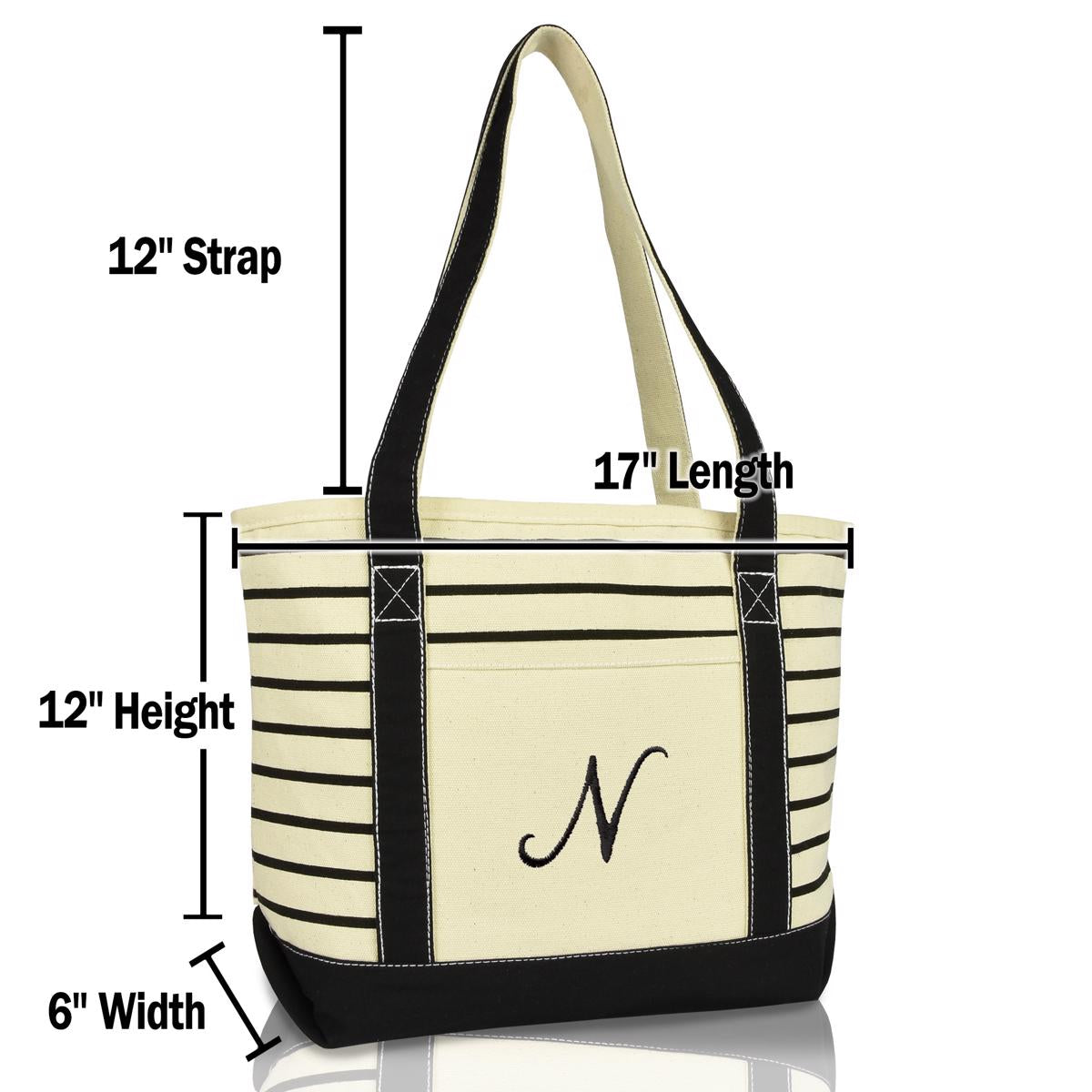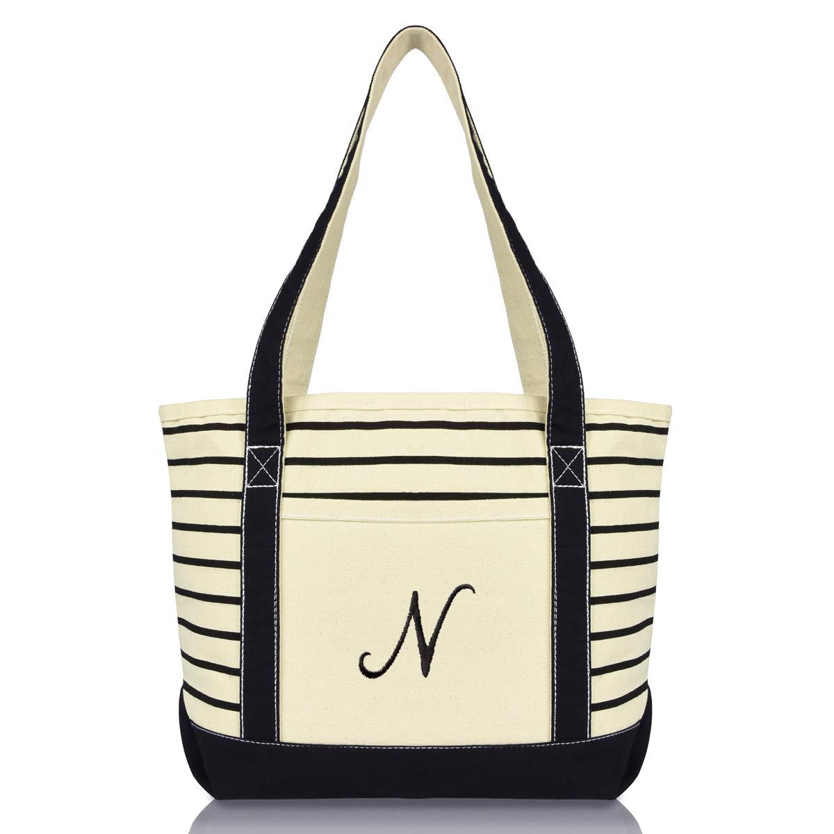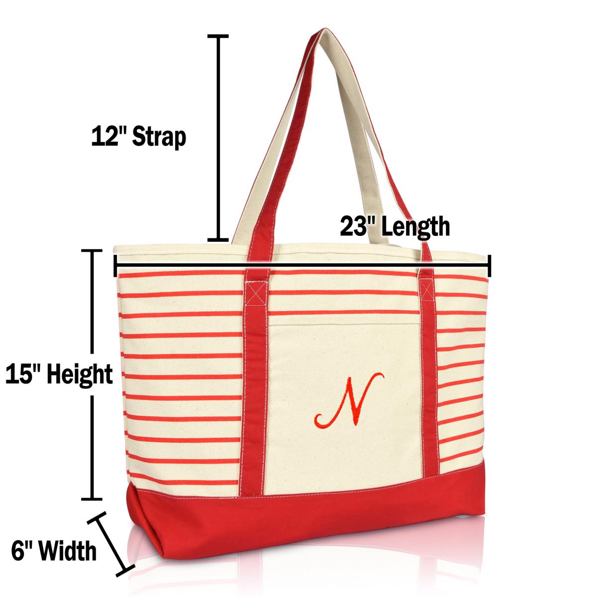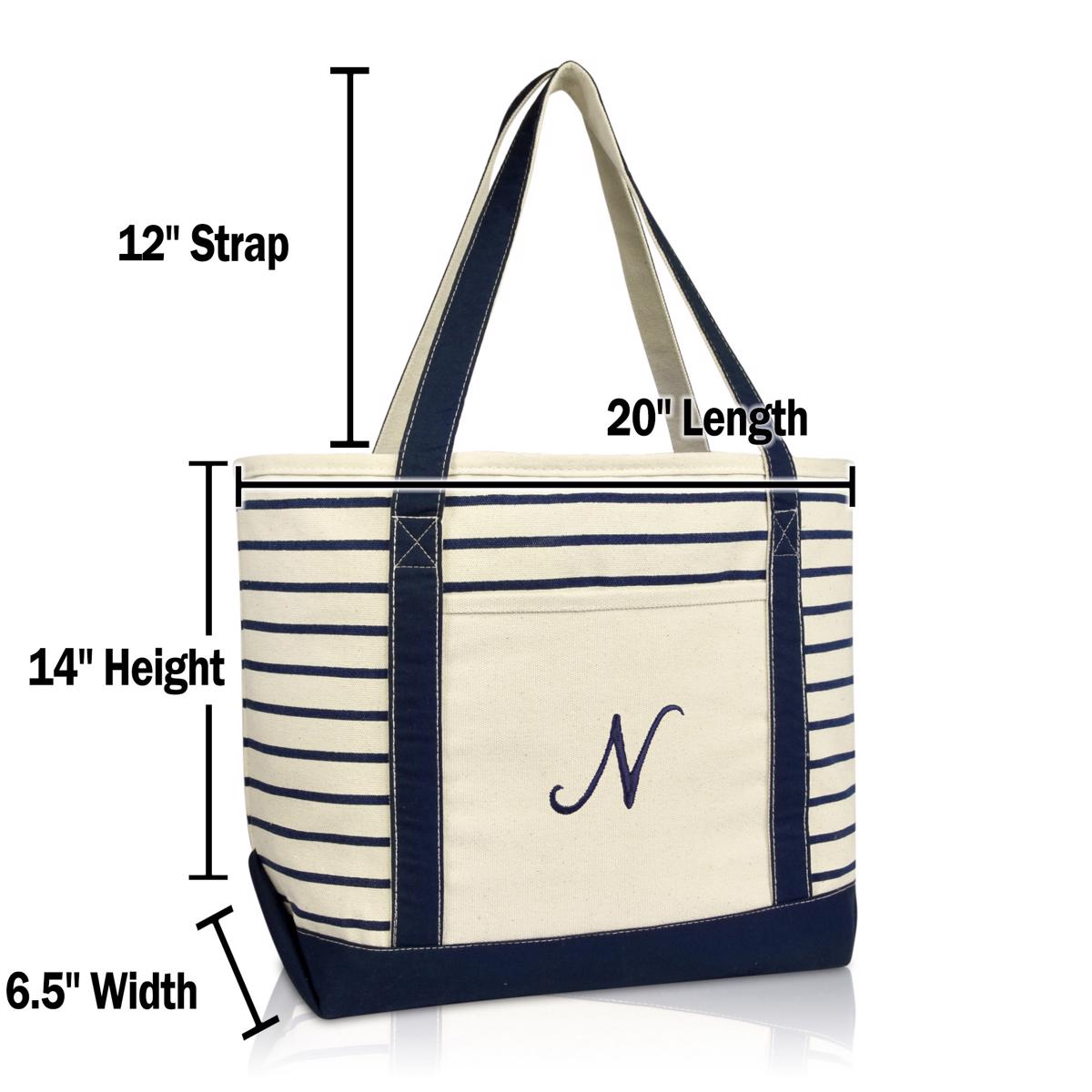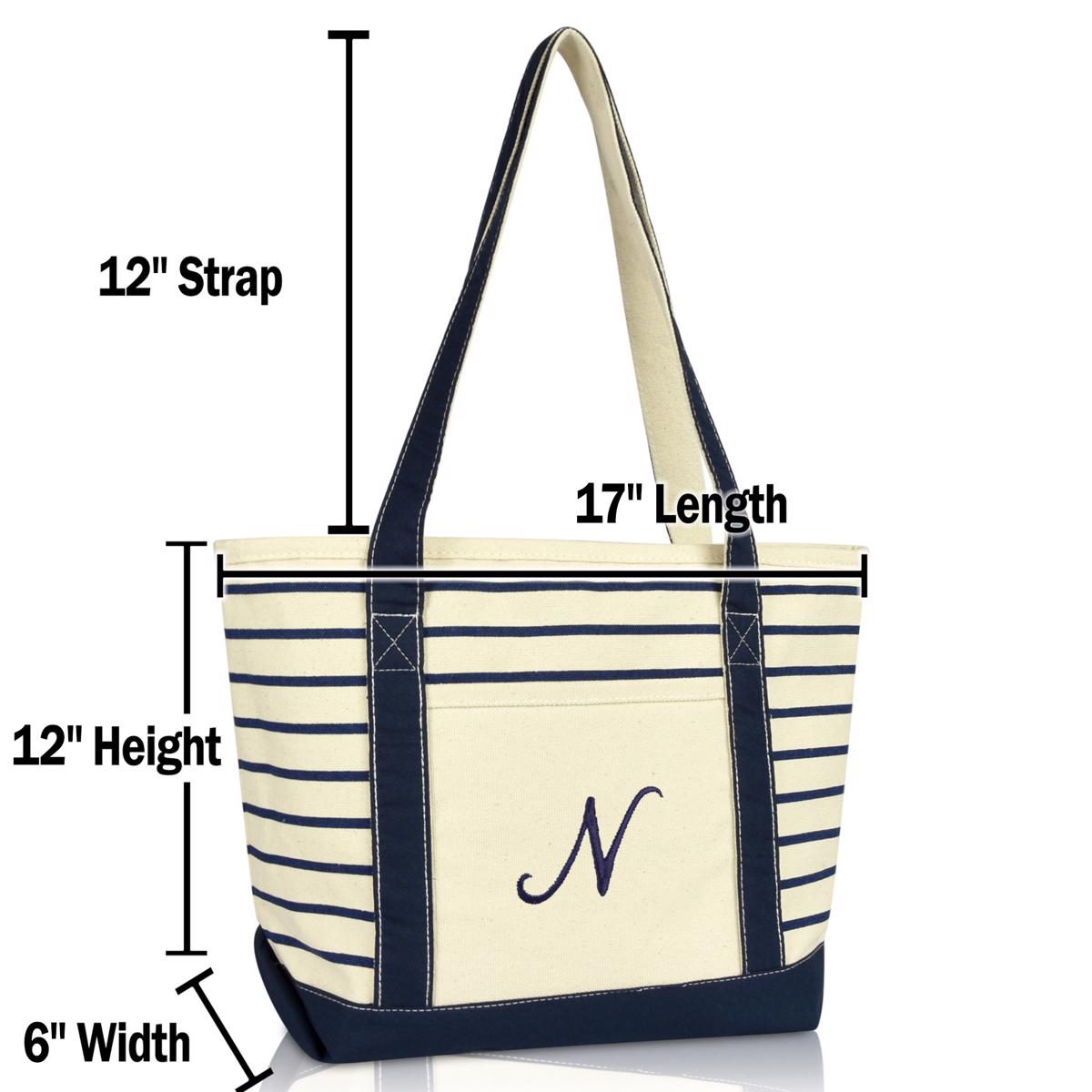 Express yourselves with our Initial Letter 100% premium cotton striped tote bag in a great style that lasts over time. Stitched with the best quality threading, our designs are carefully thought through to give the best vibrance and feel. Use this french sailor patterned bag on sailing trips, beach outings or just everyday wear. Great as a gift for a birthday, special occasion mom, grandmother or daughter. Both economical and eco-friendly, all bags feature a Large Outer Pocket, Zippered Inner Pocket, and Zippered Top Closure. Initial Letter: N / Size: Small, Medium, Large / Color: Black, Navy Blue, Red