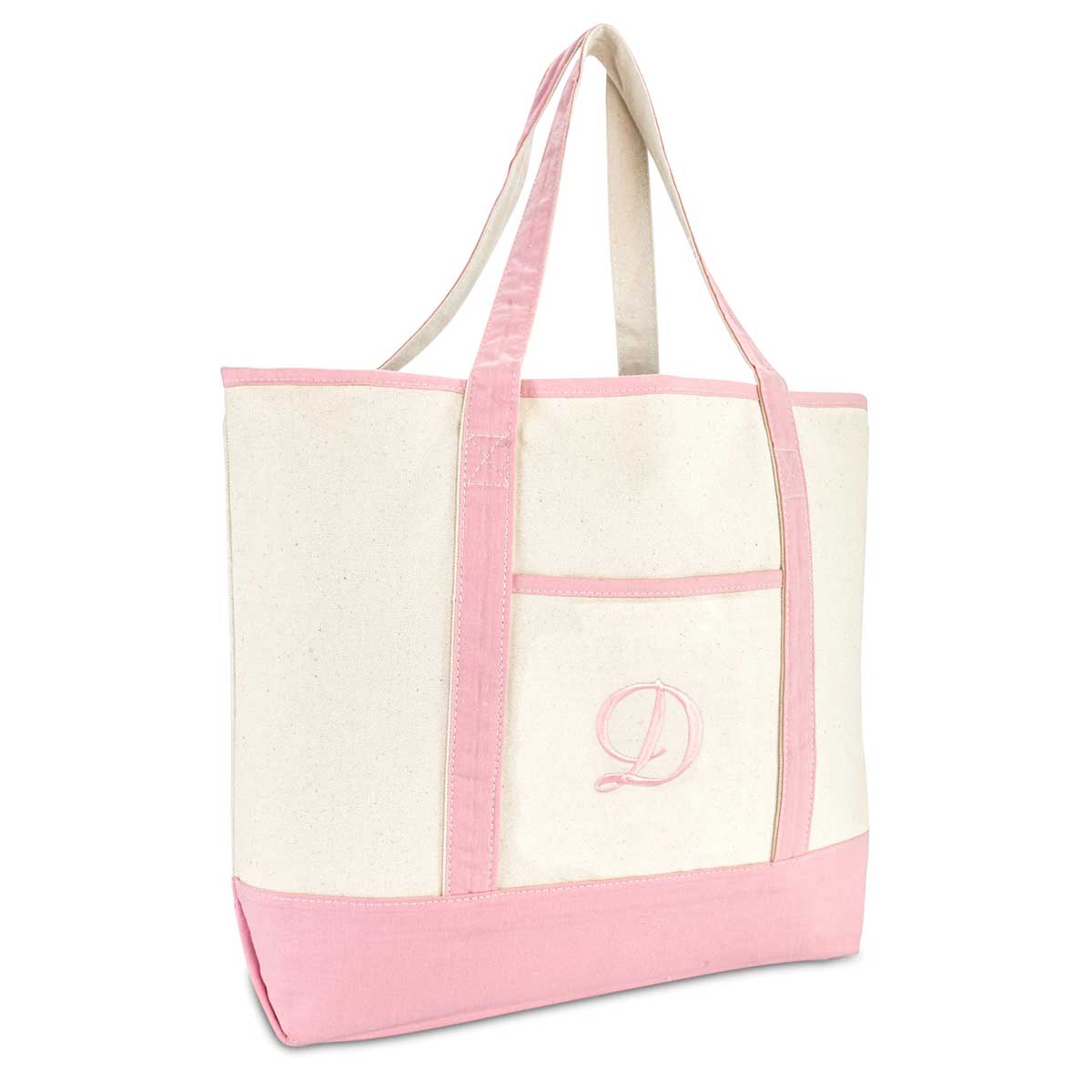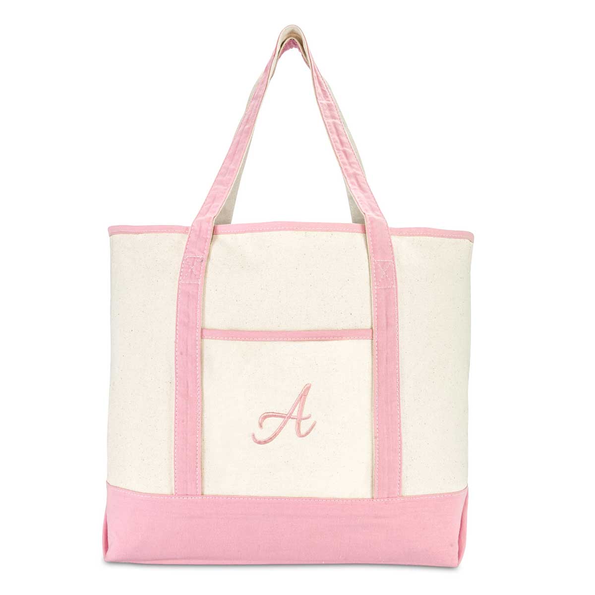 - Custom font embroidered in your favorite initial, Heavy Duty Shopping Tote with front open pocket, Inner Zippered Accessories Pocket.