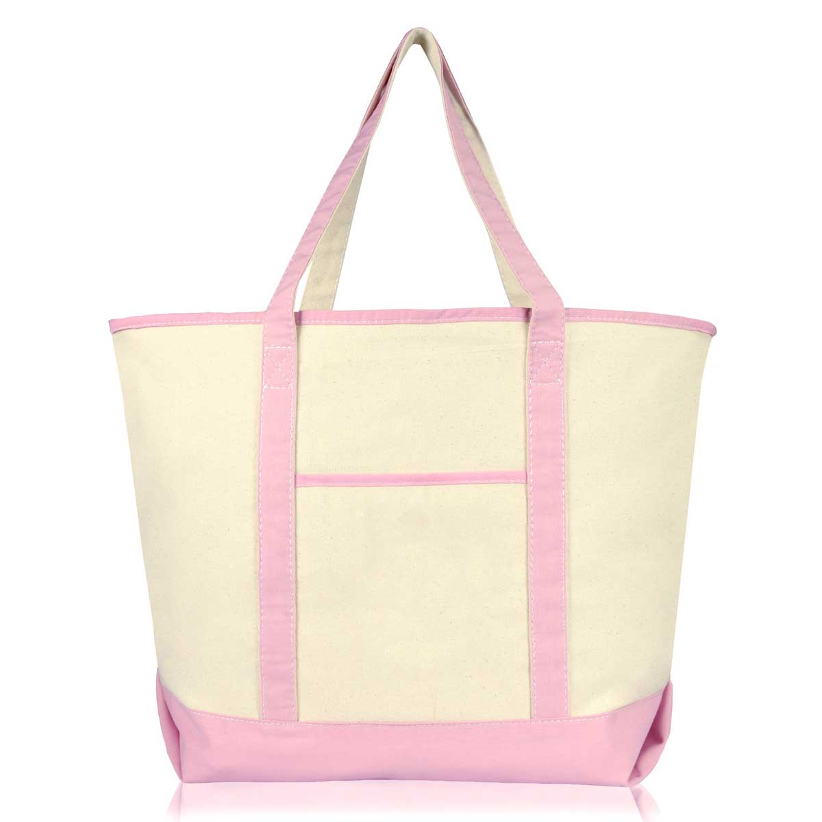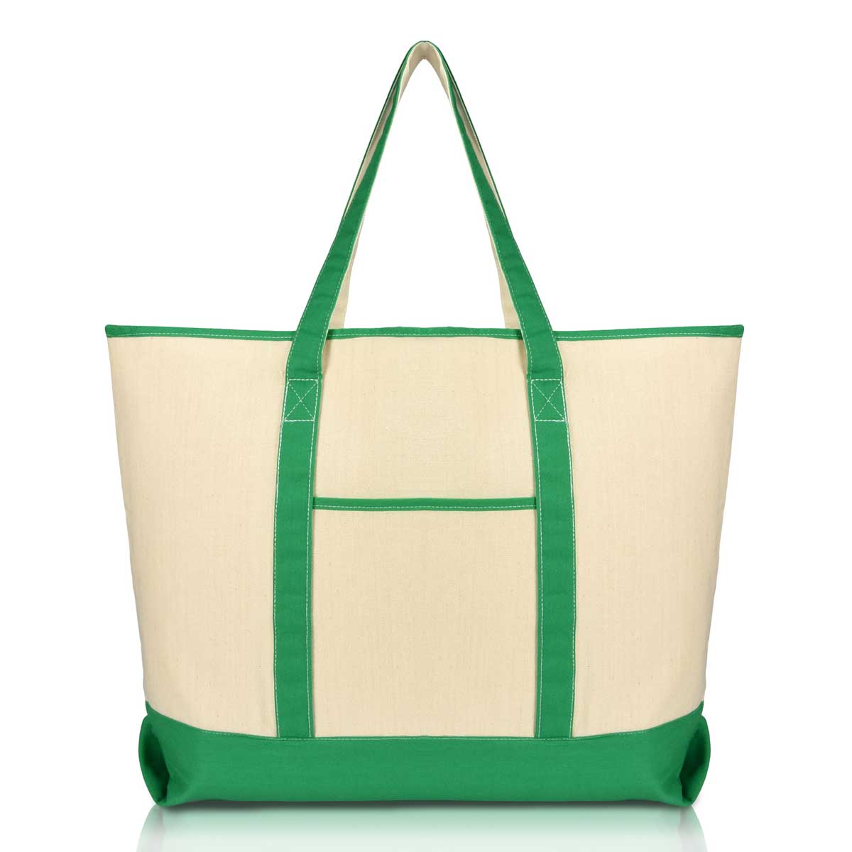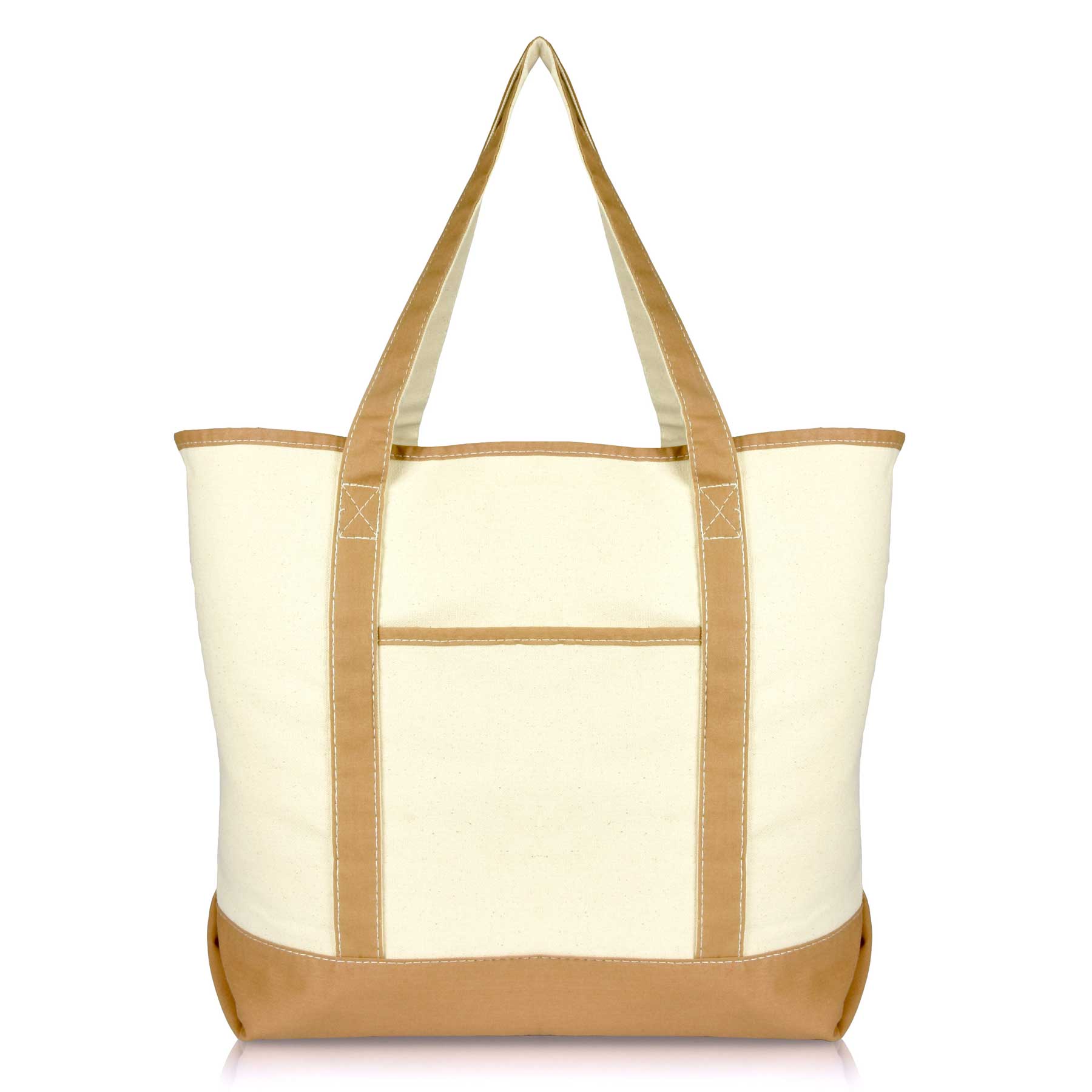 One of our most popular staples, our Extra Large Open Top Deluxe Tote Bag with Outer Pocket features double stitching along the bottom and sides of the bag. This tote has a large open main compartment with a inner zippered pocket for a more private feel.