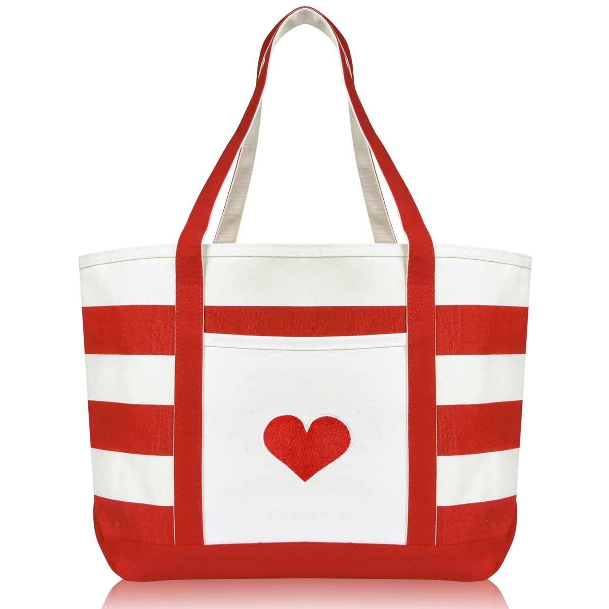Dalix helps find more ways to help you express your love. Don't miss out on our Red Heart Embroidered Tote, especially for an upcoming Valentines Day gift idea for a loved one. A cute and charming way to express romance with your loved one. Lightweight and also durable; you can feel the quality of our thick heavy duty cotton canvas upon touch: rated at 18 oz. 100% cotton, we aim to provide long lasting use for all our products. The shoulder strap is easily transferrable as a handbag into a shoulder bag; with 12 inch soft handles it allows for long periods of carrying throughout the day. Constructed with premium threading, our tote is embroidered with care and also double stitched for quality: notice the strap connector to the bag featuring a double-cross stitch which supports heavy loads in any cases such as travels, or grocery shopping. This is also great as a work bag or teacher tote in the classroom.