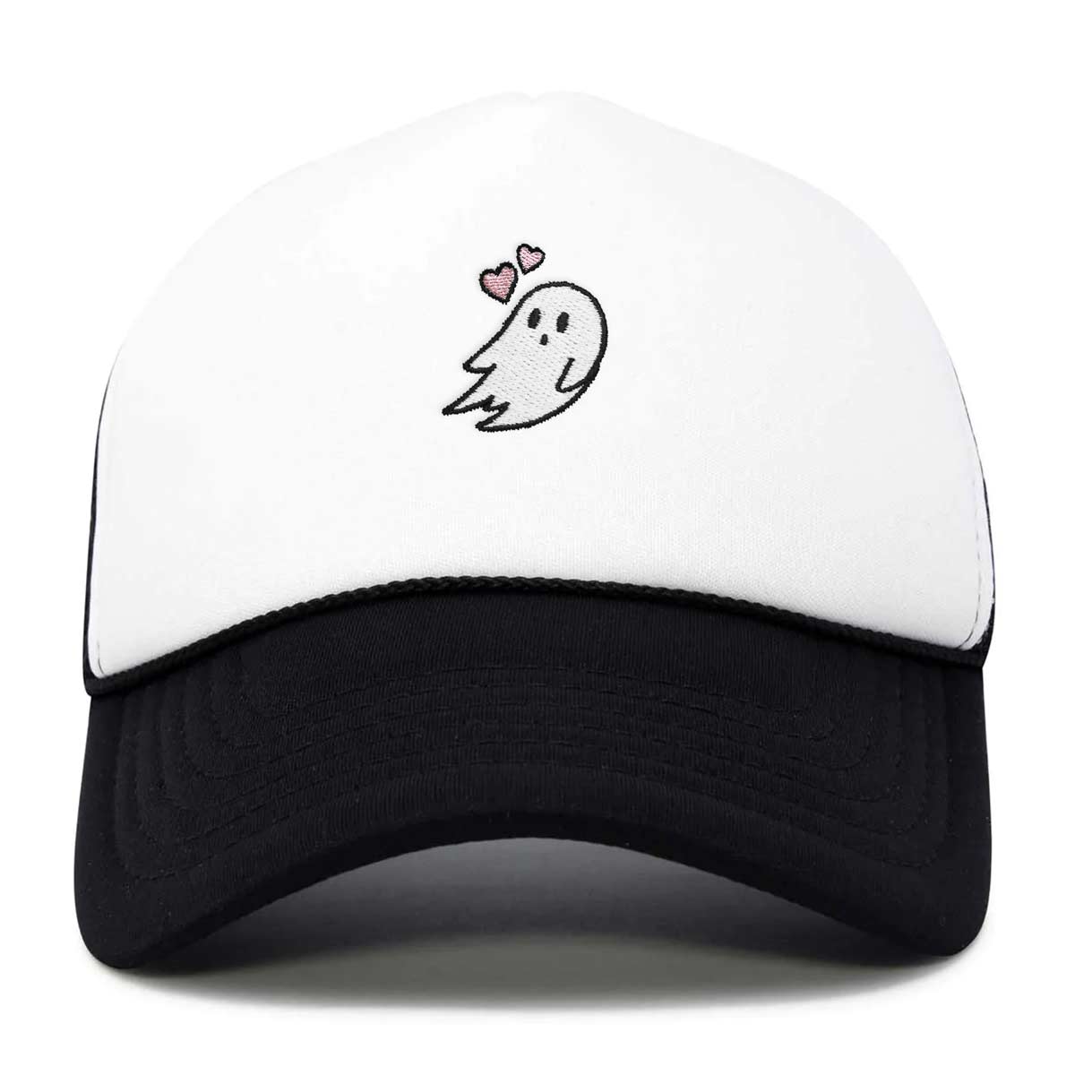 Comfy. Cozy. Cool. Our Heartly Ghost Trucker Hat is a dreamy design—embroidered with premium, vibrant thread.