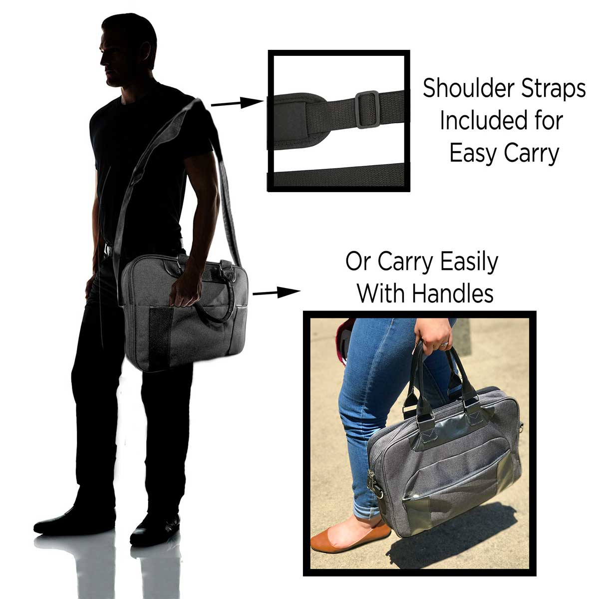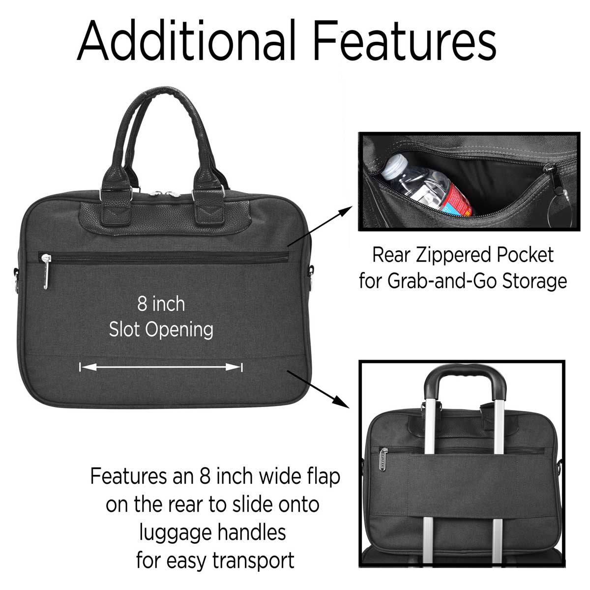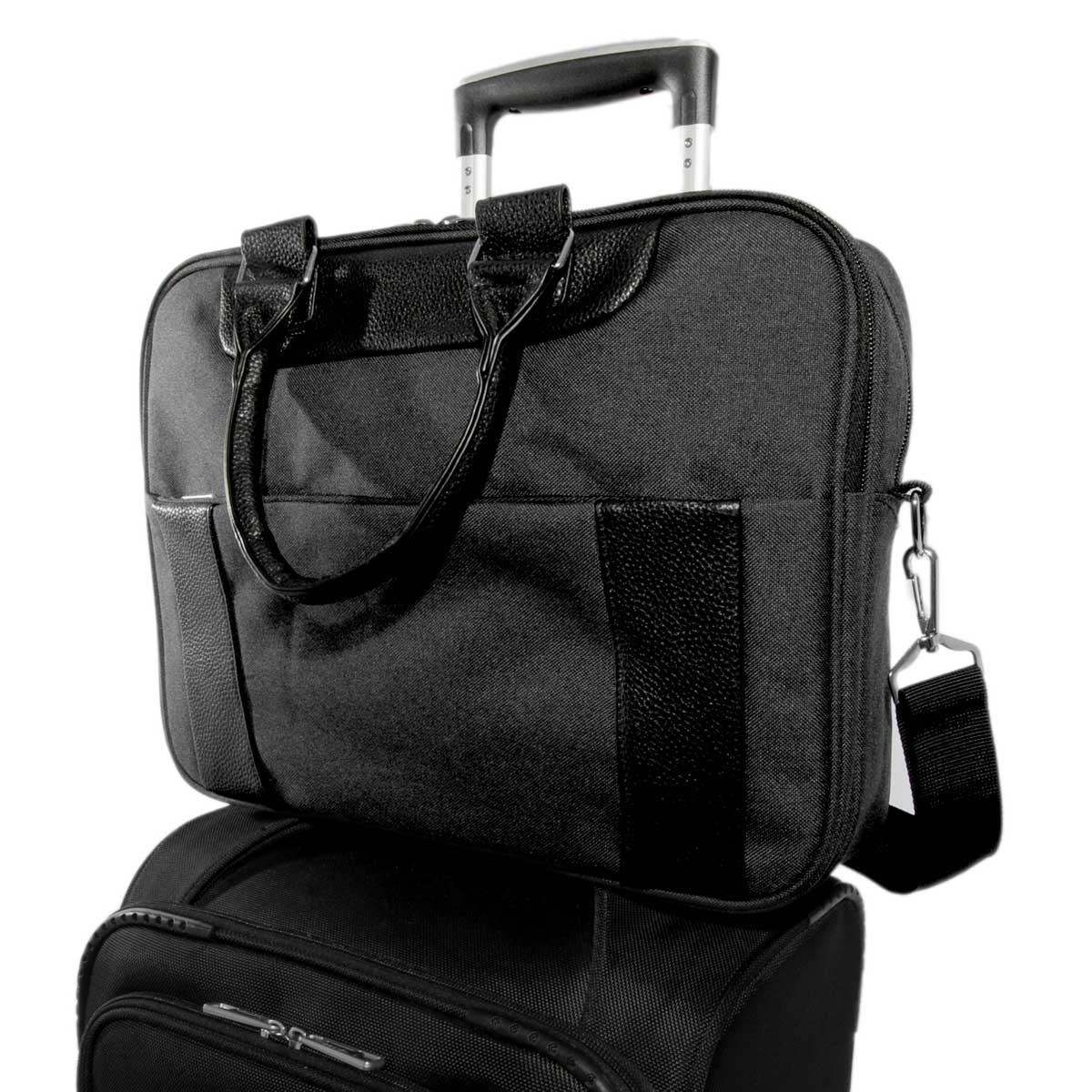 This is a custom made for men as a traveling briefcase. It streamlines your traveling process by allowing you to comfortably sit it on your carry-on luggage. Stay organized and in style with the faux leather handles. Has a laptop compartment to keep your tablet or computer safe.
