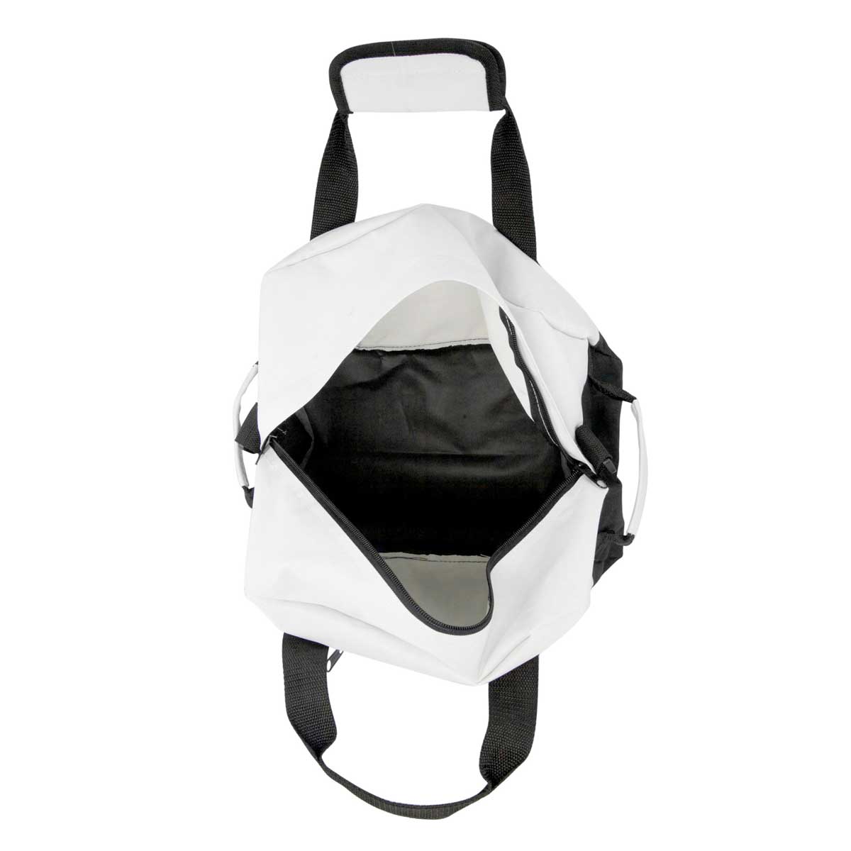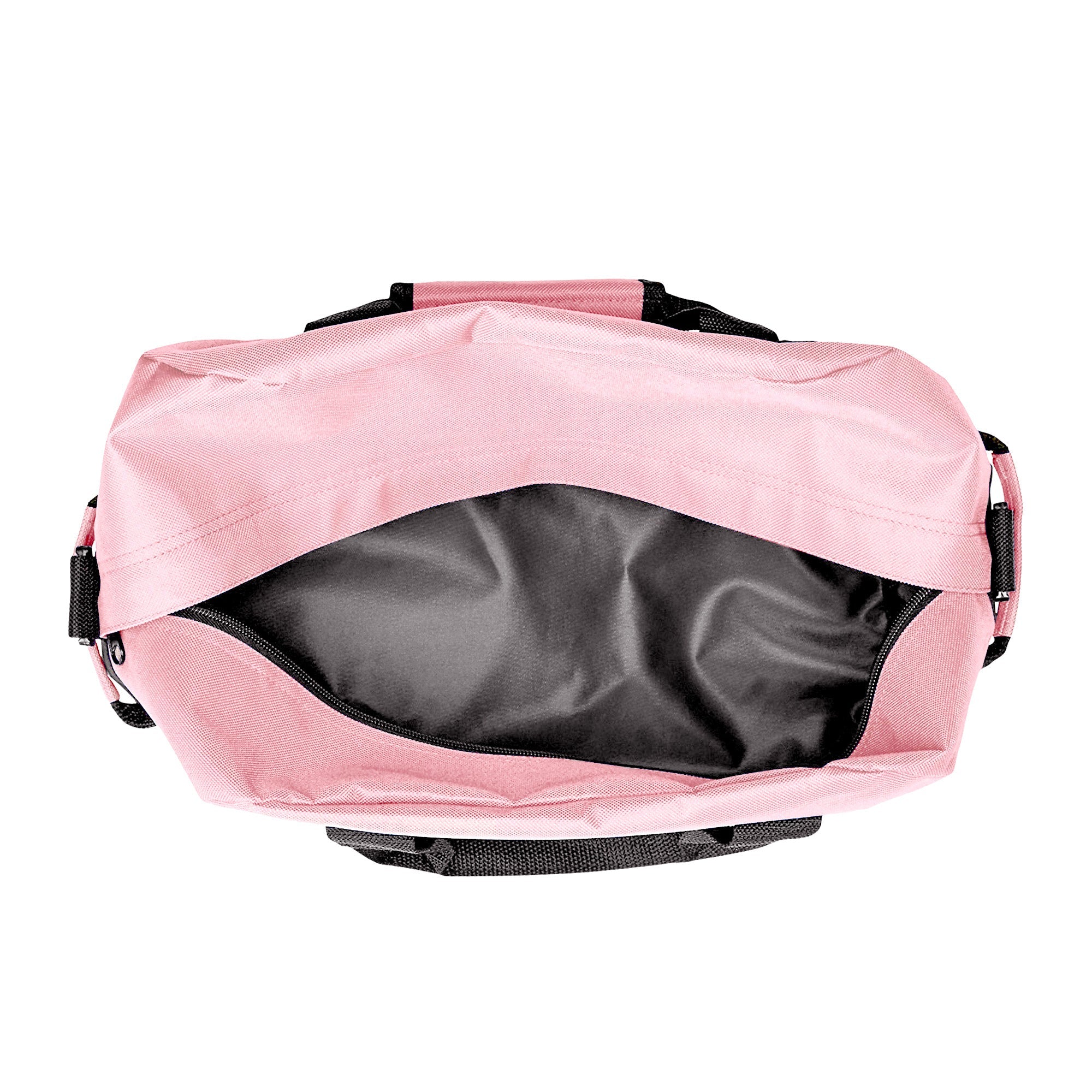 Small Duffel Bag that can be used at the gym, or for light travel. Comes with a detachable padded shoulder strap and two handles for easy grab.