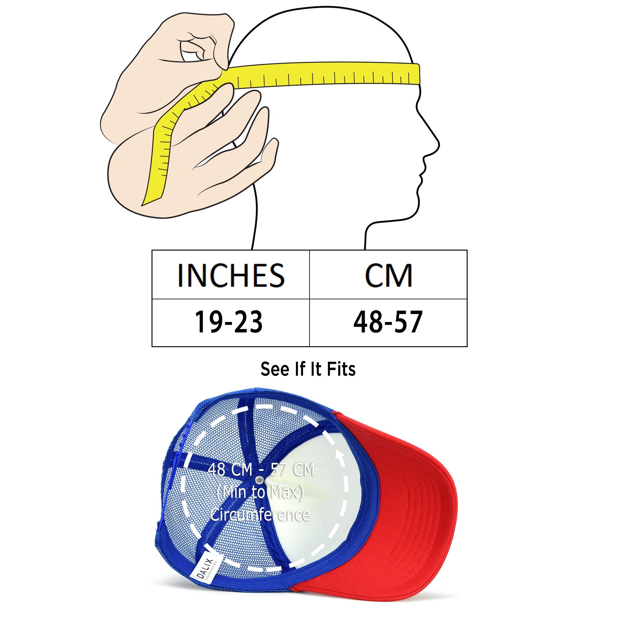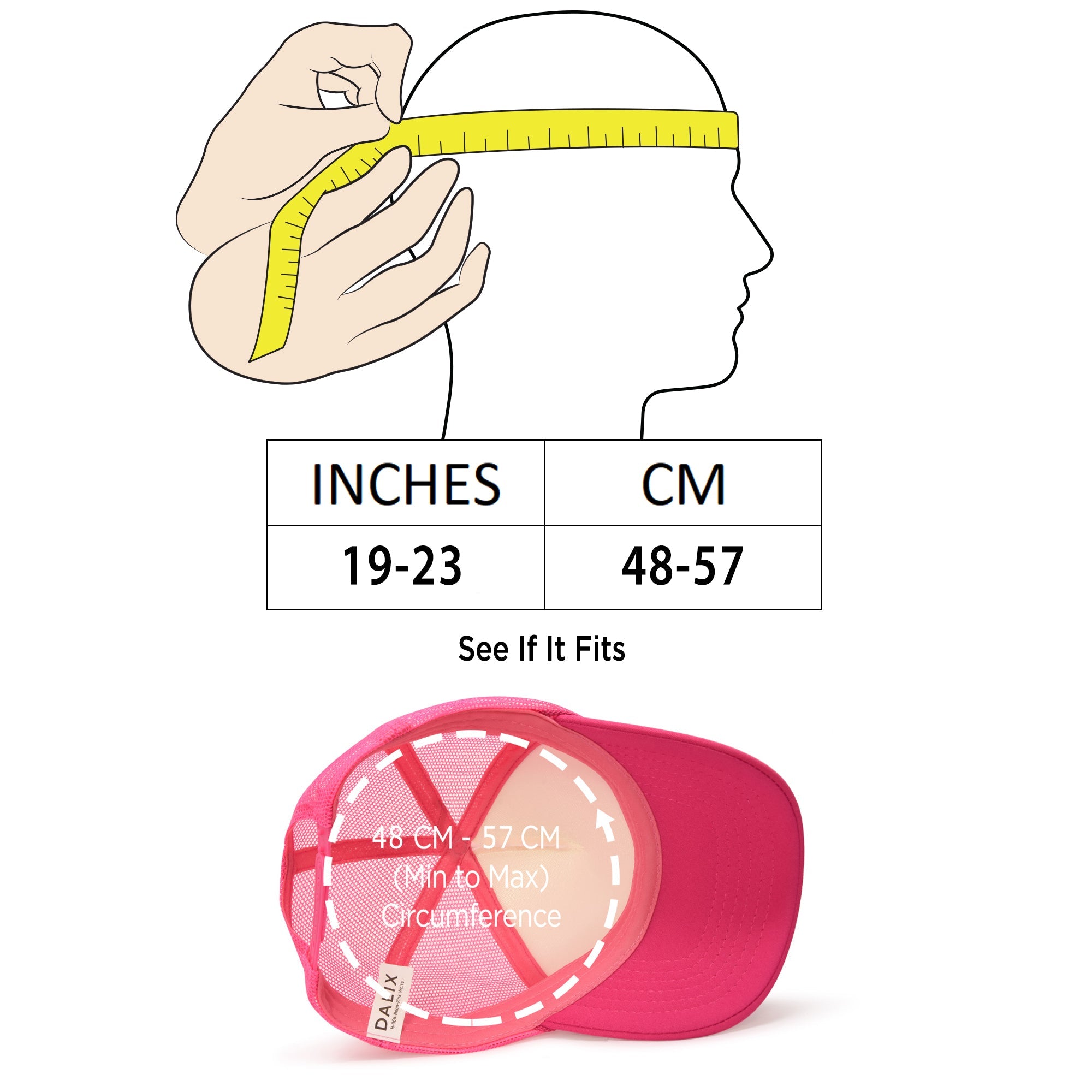 Dalix Childrens Trucker Cap is Perfect for Outing with the family, or every day use when they are out in the sun. Baseball leagues and any special ballgame mix and match your favorite teams. Features a 5 panel design with a mesh adjustable snapback back, light-weight, well ventilated. This is sized for adolescents with head size are 54 CM or 21" in Diameter, with an adjustable strap of about 3-4 Inches less or more ( so between 18-23")